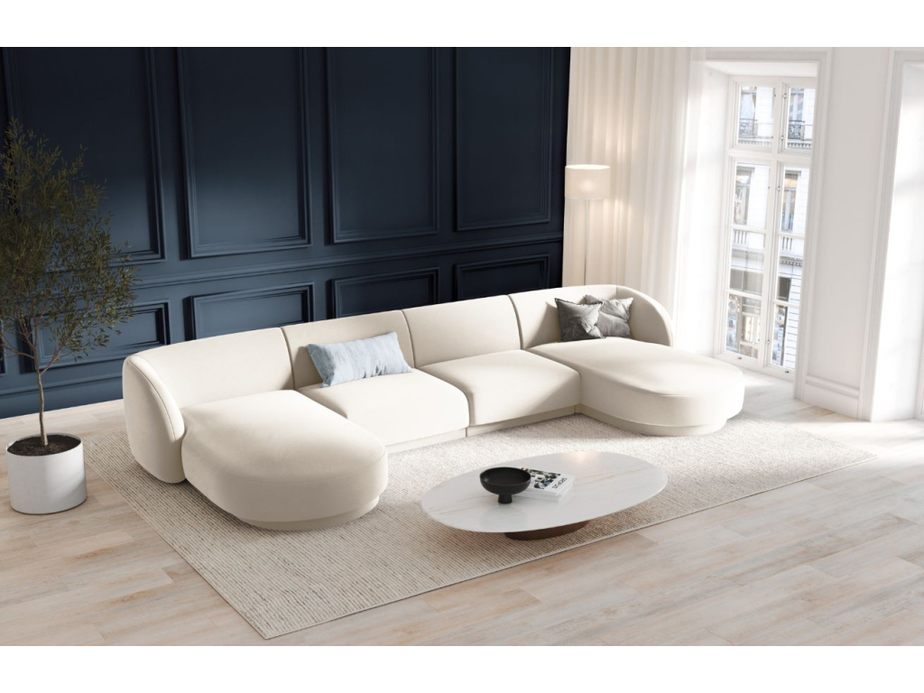 Rohovou pohovku Miley od značky Micadoni si zamilujete! Její obloukovitě tvarované opěradlo vybízí k tomu, abyste se na chvíli pohodlně usadili. Díky mírně zapuštěné základně dodává sezení vznášející se charakter, který dotváří vzhled připomínající oblak. Měkký, odolný a na pohled příjemný samet poskytuje nábytku lákavý vzhled, který vnese do místnosti záři a pocit sofistikovanosti. Pohovka je ideální volbou do interiéru v moderním nebo skandinávském stylu. K pohovce je možné přikoupit další produkty z kolekce Miley. Díky tomu si můžete vytvořit sedací soupravu, kterou je vhodné kombinovat se skleněným nebo dřevěným konferenčním stolkem.