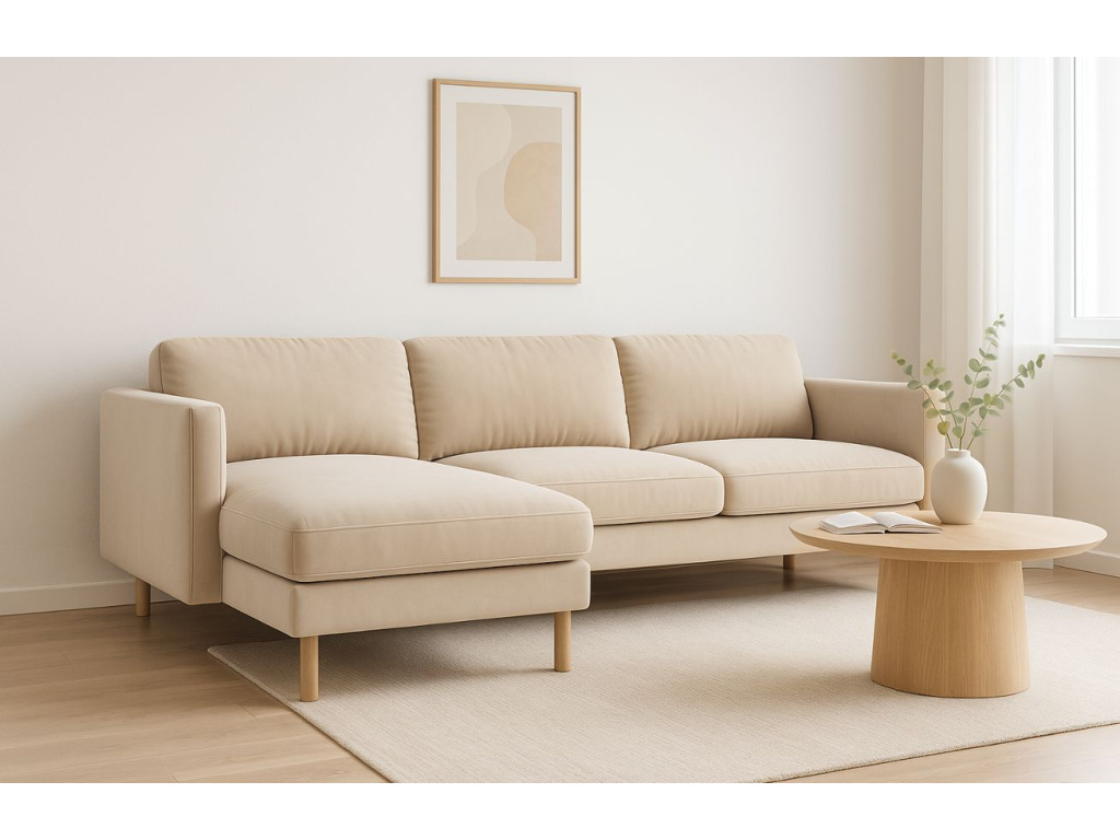 Rohová trojmístná pohovka Eden spojuje skandinávský design s výjimečným pohodlím a kompaktními rozměry. Díky čistým liniím, elegantním područkám a zaoblené dřevěné podnoži působí lehce a vzdušně, což z ní dělá ideální volbu do menších interiérů. Přestože nezabere mnoho místa, nabízí útulné a komfortní sezení, které vybízí k odpočinku. Sedací část je vyplněna přírodním peřím, které poskytuje měkkost a příjemnou oporu při každodenním lenošení. Sametové čalounění Paris má mimořádně hebký povrch a jemný lesk, který v závislosti na dopadu světla vytváří elegantní stínování. Pohovka je navíc pečlivě vyrobená na zakázku v Evropě, což zaručuje vysokou úroveň zpracování a dlouhou životnost. Sezení Eden se hodí do moderních bytů, skandinávsky laděných obývacích pokojů i stylových kanceláří nebo čtecích koutků. Skvěle ji doplní odkládací stolek z přírodního dřeva, měkký polštář nebo pléd v tlumených tónech, které podtrhnou jemnost sametu.