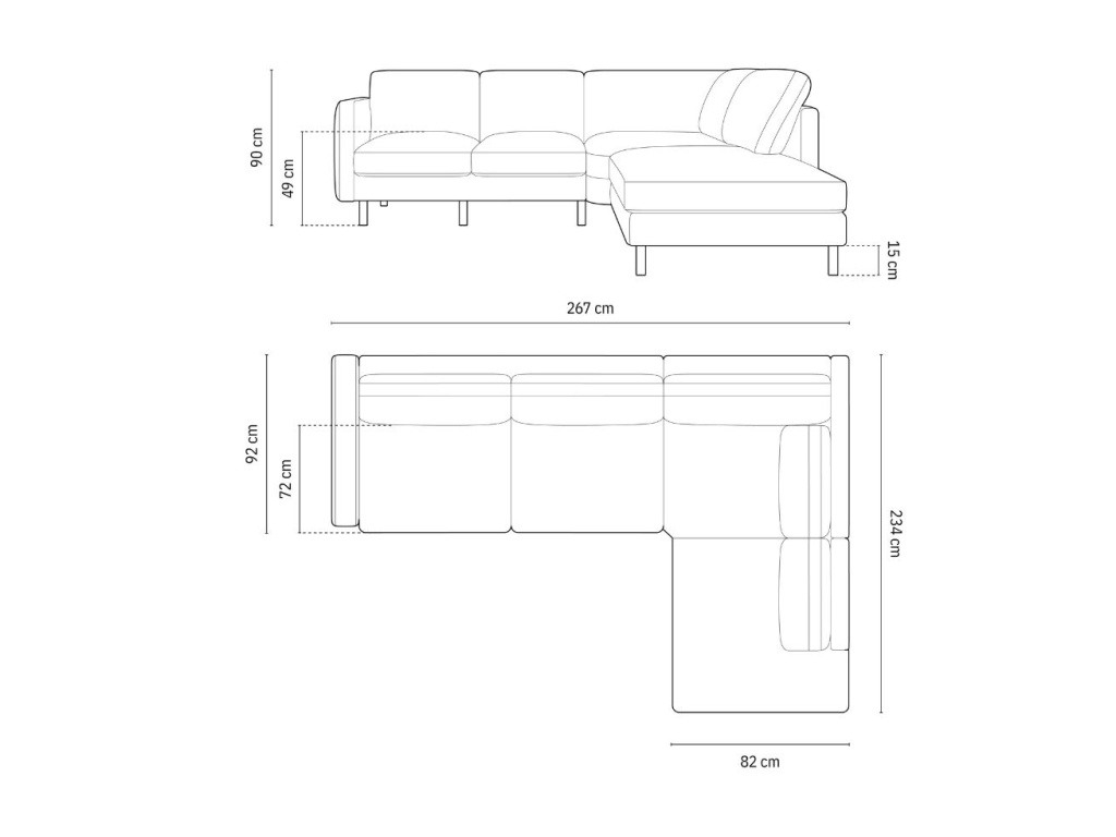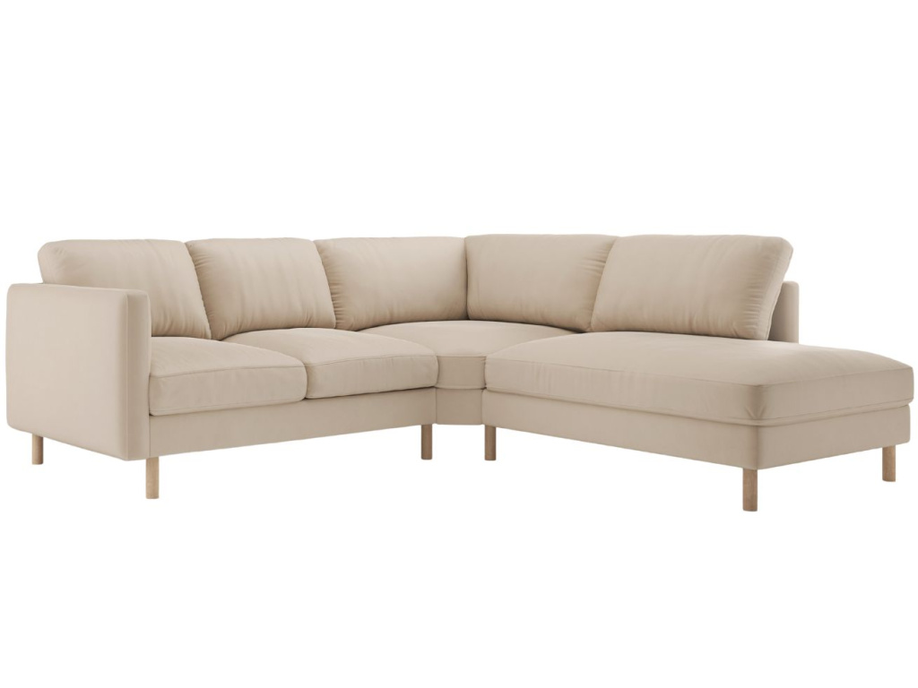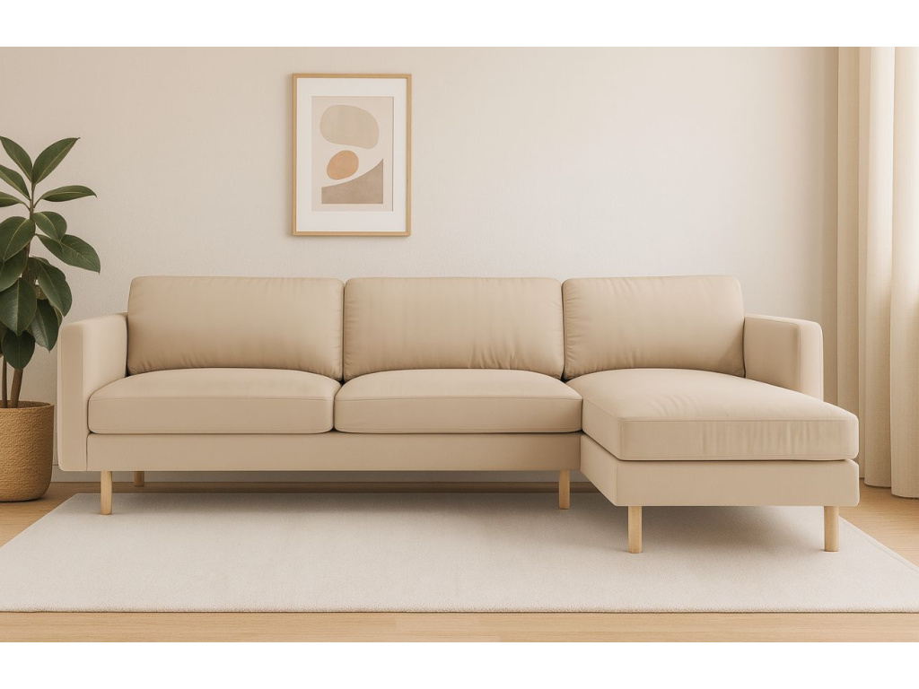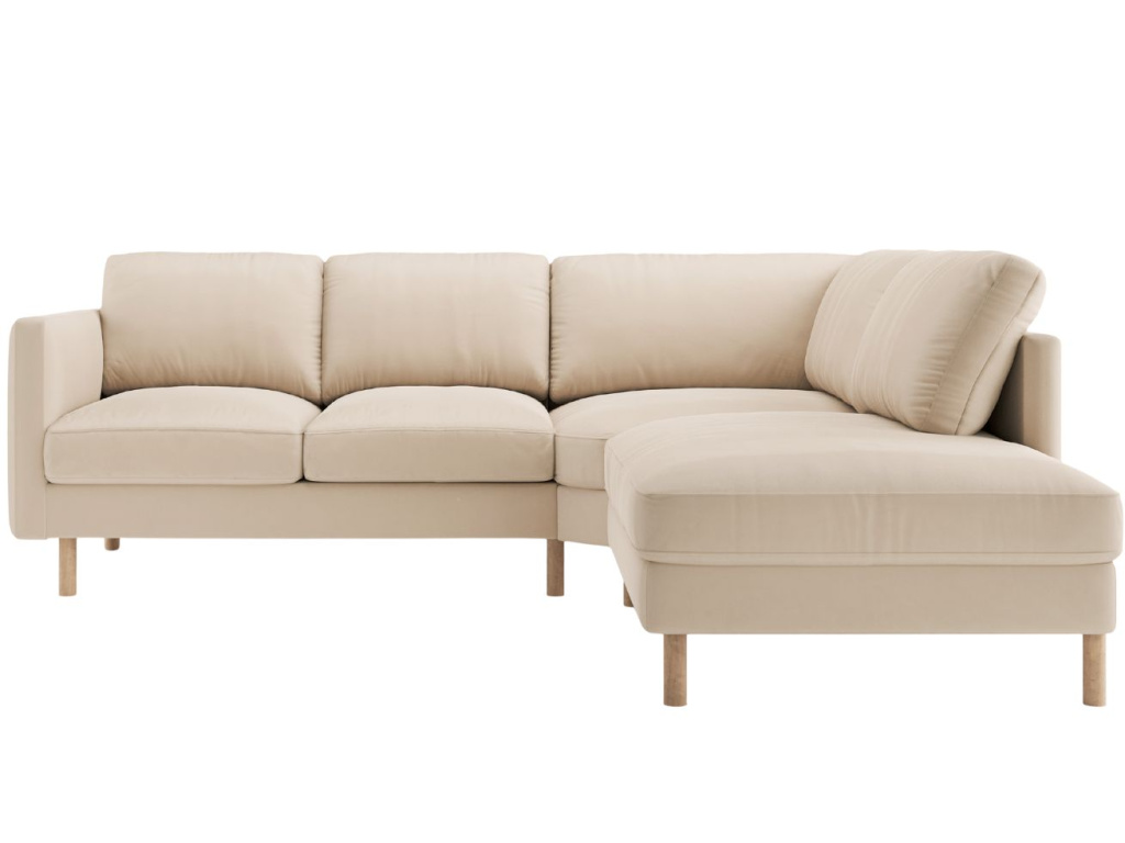 Podívám seBéžová sametová rohová pohovka Eden 267 cm, pravá