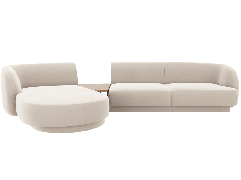 Trojmístnou rohovou pohovku Miley od značky Micadoni si zamilujete! Její elegantně obloukovité opěradlo vás doslova zve k odpočinku, zatímco jemně zapuštěná základna dodává celému kusu vzdušnost a lehkost. Měkký, odolný a na pohled příjemný samet poskytuje nábytku lákavý vzhled, který vnese do místnosti záři a pocit sofistikovanosti. Pohovka je ideální volbou do interiéru v moderním nebo skandinávském stylu. K pohovce je možné přikoupit další produkty z kolekce Miley. Díky tomu si můžete vytvořit sedací soupravu, kterou je vhodné kombinovat se skleněným nebo dřevěným konferenčním stolkem.