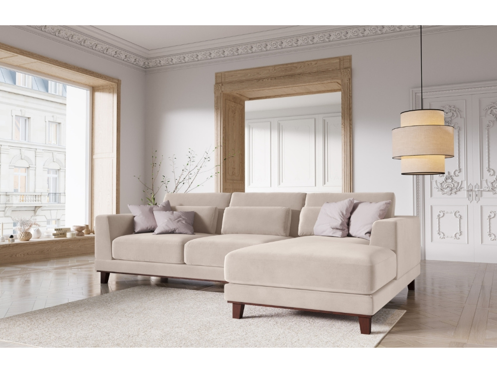 Náruč elegantní rohové pohovky Leon od značky Windsor & Co vám nabídne naprosto dokonalé místo určené k odpočinku a relaxaci. S pěnou vyplněnými opěradly a sedákem je Leon dokonalou směsí stylu, pohodlí a neodolatelného kouzla. Pohovka čalouněná příjemnou sametovou látkou v béžovém provedení se stane přímo královským místem v moderně zařízených prostorech, ať už bytových či komerčních. Tkanina je velmi odolná proti oděru, čímž zaručí dlouhodobé používání bez známek opotřebení. Atraktivní design s nádechem luxusu a klasiky jsou přesné známky pohovky Leon. Osobitost pohovce dodává podnož z dubového dřeva. Pro sjednocení vašeho sedacího koutu doporučujeme pohovku doplnit také stylovým křeslem ze stejnojmenné série. Odpočiňte si a relaxujte ve stylu!