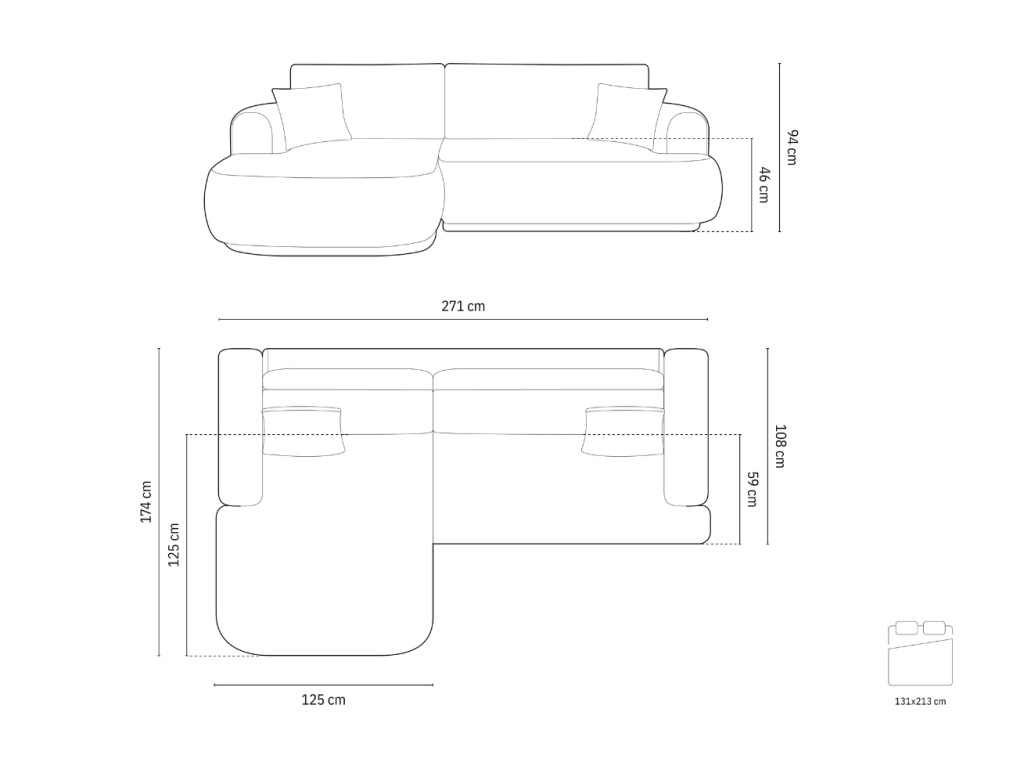 Podívám seSametová rozkládací pohovka Ella 271 cm, levá