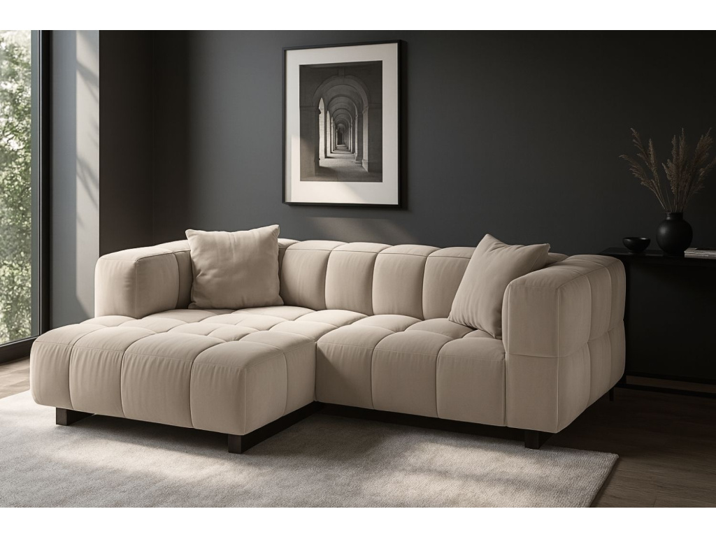 To chciBéžová sametová rozkládací pohovka Puma 260 cm, levá