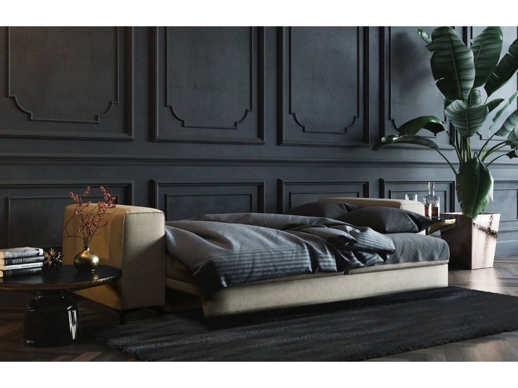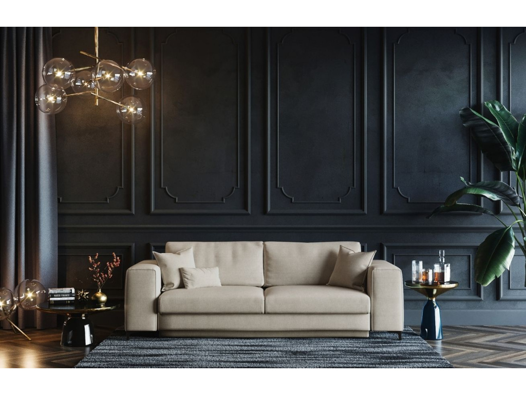Moderní třímístná pohovka DEVICHY Rothe s jednoduchou konstrukcí uspokojí potřeby i toho nejnáročnějšího zákazníka. Pohovku lze snadným rozložením přeměnit na pohodlné a dostatečně velké lůžko. Její čalounění si na první dotyk zamilujete - je tvořeno kvalitní látkou v béžovém provedení, která je charakteristická svou vysokou odolností a speciální vodoodpudivou úpravou. Reprezentativní a exkluzivní vzhled pohovky v sobě dokonale kombinuje pohodlí a styl.