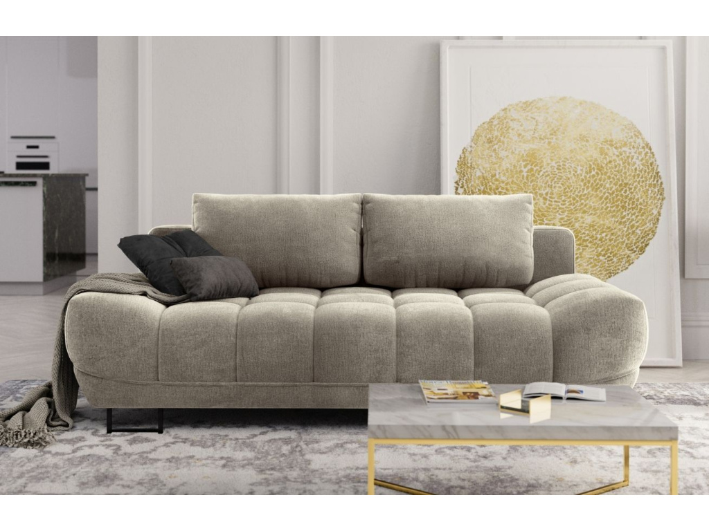Vkusná třímístná rozkládací pohovka Cirrus zaujme svou elegancí a praktičností. Čalounění z kvalitní, prošívané, strukturované sametové látky, dodá vašemu obývacímu pokoji styl a příjemnou, útulnou atmosféru. Hřejivý materiál, příjemný na dotek, poskytne maximální komfort celé rodině. Osobitost pohovce dodává černě lakovaná kovová podnož. Pohovka je rozkládací, a tak se stane nejen designovým prvkem obývacího pokoje, ale také praktickou přistýlkou pro vaše návštěvy. Příjemným bonusem je úložný prostor.