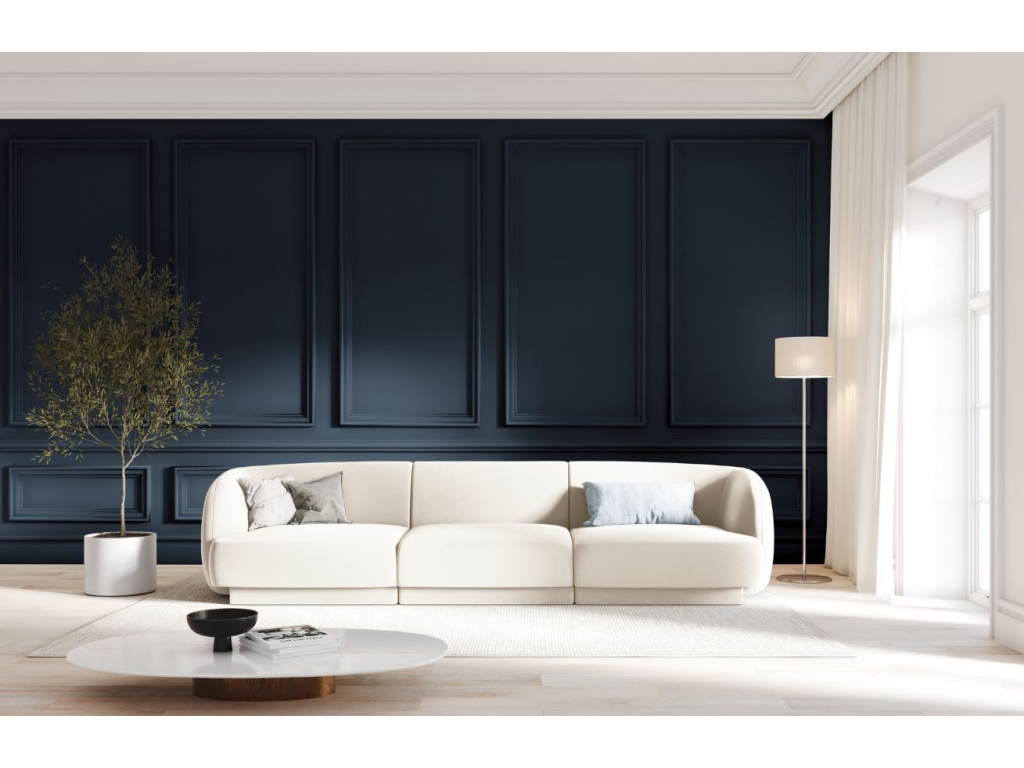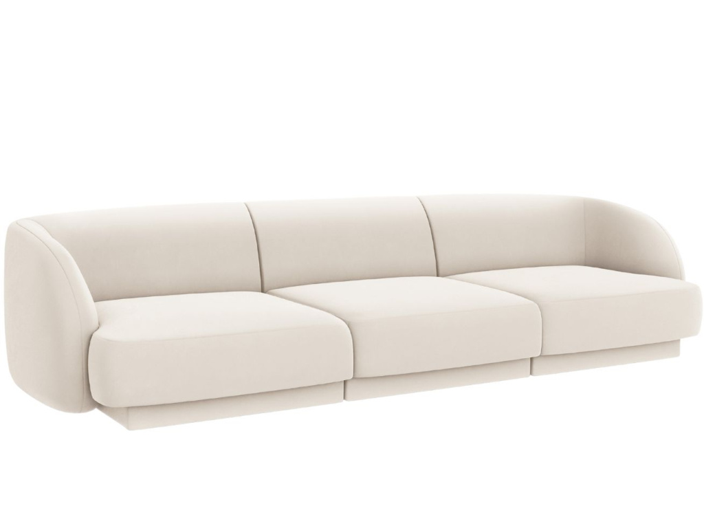 Trojmístnou pohovku Miley od značky Micadoni si zamilujete! Její obloukovitě tvarované opěradlo vybízí k tomu, abyste se na chvíli pohodlně usadili. Díky mírně zapuštěné základně dodává sezení vznášející se charakter, který dotváří vzhled připomínající oblak. Měkký, odolný a na pohled příjemný samet poskytuje nábytku lákavý vzhled, který vnese do místnosti záři a pocit sofistikovanosti. Pohovka je ideální volbou do interiéru v moderním nebo skandinávském stylu. K pohovce je možné přikoupit další produkty z kolekce Miley. Díky tomu si můžete vytvořit sedací soupravu, kterou je vhodné kombinovat se skleněným nebo dřevěným konferenčním stolkem.