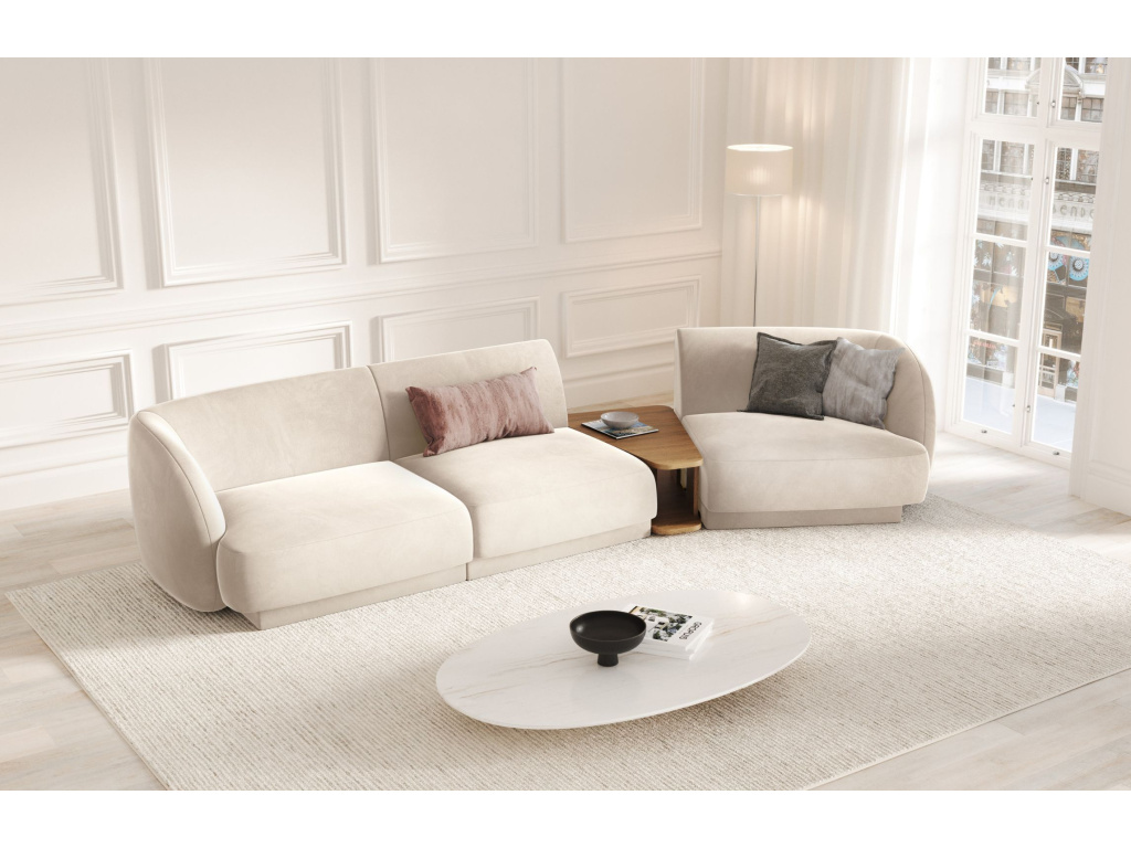 Trojmístnou pohovku Miley od značky Micadoni si zamilujete! Její elegantně obloukovité opěradlo vás doslova zve k odpočinku, zatímco jemně zapuštěná základna dodává celému kusu vzdušnost a lehkost. Měkký, odolný a na pohled příjemný samet poskytuje nábytku lákavý vzhled, který vnese do místnosti záři a pocit sofistikovanosti. Pohovka je ideální volbou do interiéru v moderním nebo skandinávském stylu. K pohovce je možné přikoupit další produkty z kolekce Miley. Díky tomu si můžete vytvořit sedací soupravu, kterou je vhodné kombinovat se skleněným nebo dřevěným konferenčním stolkem.
