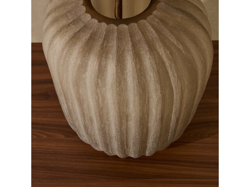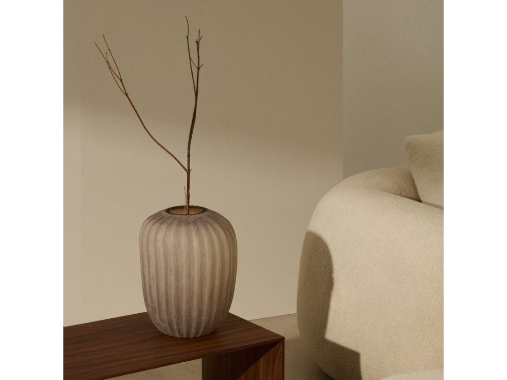 Skleněná váza Lumia je ztělesněním moderní elegance, která vyniká jemně strukturovaným povrchem a vertikálními liniemi. Její kouřově béžový tón a organicky oblý tvar dodají každému stolu či komodě sofistikovanost a šmrnc – skvěle se hodí do minimalistických i glamour interiérů. Díky dostupnosti ve třech velikostech s ní můžete vytvořit vizuálně působivou kompozici. Tato váza není jen dekorací, ale i výrazem vytříbeného vkusu a smyslu pro detail.