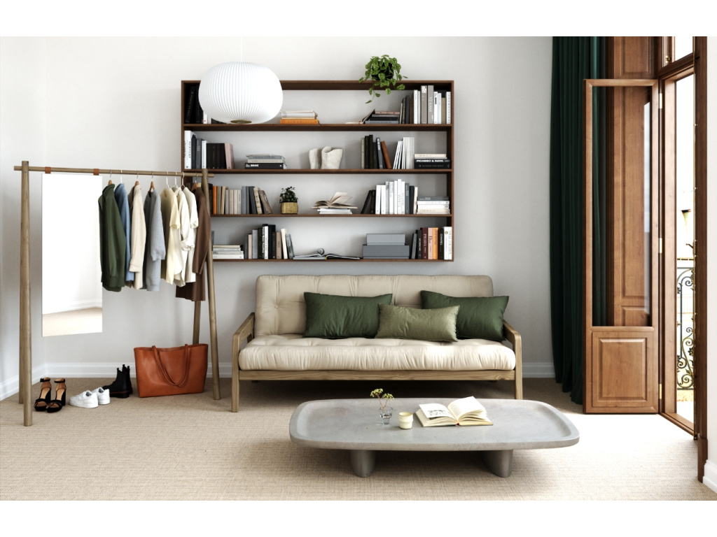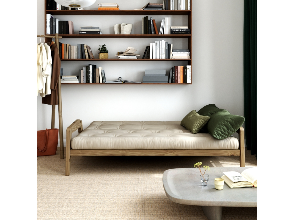 Třímístná rozkládací pohovka Grab značky Karup Design je dle slov designérů ideálním kouskem pro trávení společného času. Jednoduchým pohybem se elegantní pohovka promění na praktické lůžko. Konstrukce z masivního borovicového dřeva s FSC certifikací je doplněna kvalitní 14 cm vysokou futonovou matrací, která v sobě kombinuje recyklovaná vlákna a 4 cm pěnu. Praktickým detailem této pohovky jsou designové opěrky, které snadno odepnete a vytvoříte tak postel pro dva. Grab se skvěle hodí do skandinávsky laděných domovů. Představuje skvělé řešení především pro menší interiéry, kde oceníte další místo na spaní. Vybrat si ji můžete v další barvě konstrukce či v mnoha barvách matrací.