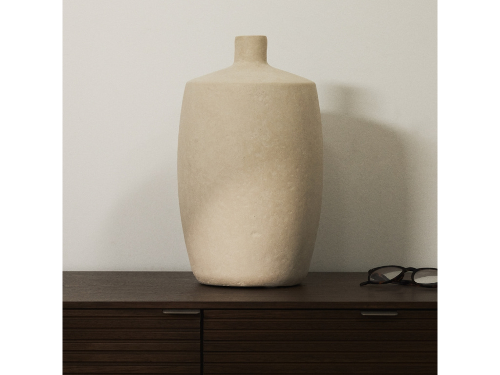 Elegantní dekorativní váza, která vnese do vašeho interiéru nádech umělecké textury. Váza Mireni je ruční tvorbou inspirovaným kouskem z papier-mâché – materiálu s jemnými nerovnostmi a subtilními barevnými variacemi, díky čemuž je každý kus jedinečný a přirozeně zajímavý na pohled. Design v tlumeném béžovém tónu se snadno kombinuje s různými styly – od moderního a skandinávského po minimalistický nebo přírodní. Její textura a materiál vytvářejí vizuální lehkost a charakter, který osvěží jakýkoli kout domova – od obývacího pokoje přes jídelní stůl až po komodu či policový systém.