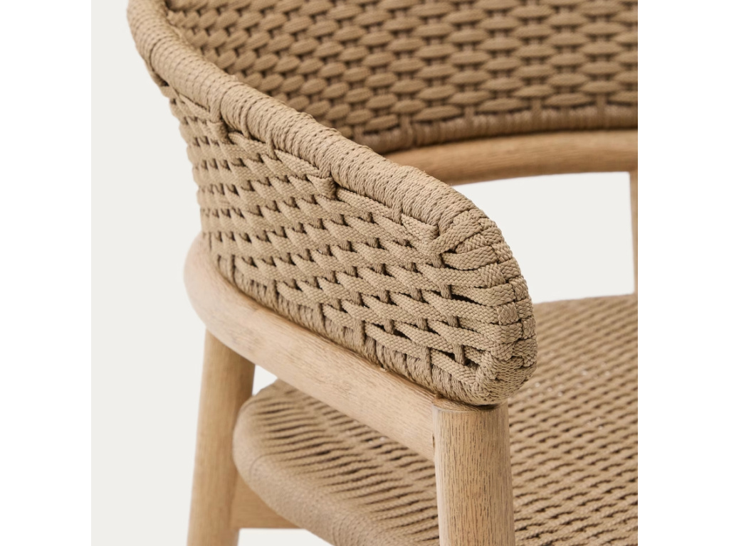 Kolekce zahradního nábytku Arinella přináší dokonalé spojení rustikálního stylu s moderním designem. Každý kus – od židle a barové židle po křeslo a pohovku – je vyroben z masivního akátového dřeva s přírodním kartáčovaným povrchem, který podtrhuje jeho jedinečné tóny a kresbu. Ruční tkaní provazu, odolného vůči UV záření, dodává sedákům a opěrákům nejen pohodlí, ale i vizuální lehkost a odolnost vůči povětrnostním vlivům. Díky své pevné konstrukci je Arinella vhodná pro vnitřní i venkovní použití, ať už v zahradě, na terase nebo v interiéru. Nábytek z této kolekce je vyroben ze dřeva s certifikací FSC, což zaručuje jeho ekologický původ a podporuje odpovědné lesní hospodářství.