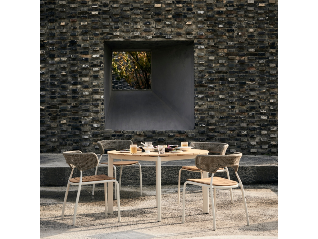 Židle Mindo 101 představuje elegantní a komfortní designový kousek, který vytvořil dánský designér Thomas E. Alken. Vytvořte si na vaší zahradě stylové posezení, kde budete moct strávit výjimečné chvíle s rodinou a přáteli – série Mindo 101 nabízí také stoly a křesla, takže prostor může být dokonale sjednocený. Židle v sobě spojuje lakovanou hliníkovou konstrukci a opěradlo tvořené zajímavým výpletem. To vše vkusně doplňuje sedák z masivního teakové dřeva. Toto materiálové spojení a originální tvarování produktu dává dohromady výrazný kus zahradního nábytku, který rozhodně stojí za pozornost!
