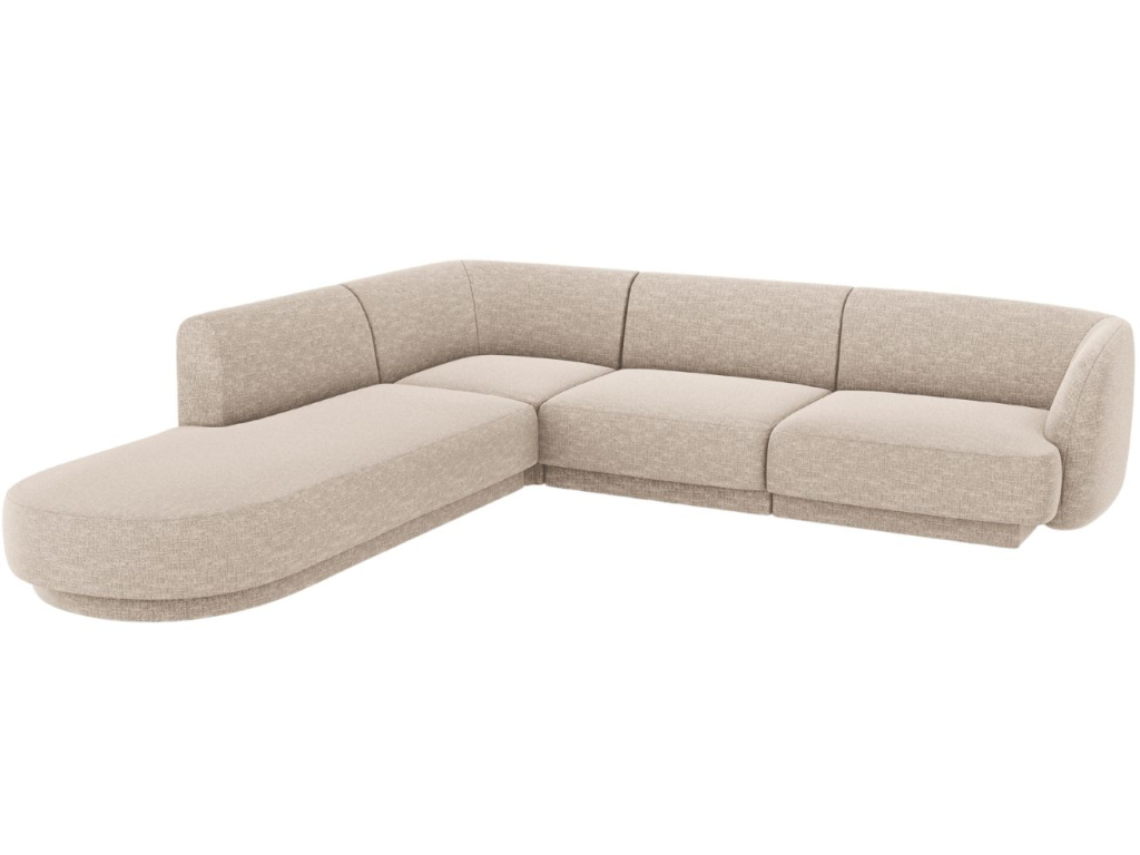 Rohovou pohovku Miley od značky Micadoni si zamilujete! Její obloukovitě tvarované opěradlo vybízí k tomu, abyste se na chvíli pohodlně usadili. Díky mírně zapuštěné základně dodává sezení vznášející se charakter, který dotváří vzhled připomínající oblak. Žinylková potahová látka je velmi příjemná až téměř hedvábná na dotek. Probarvené nitě vytvářejí poutavou 3D strukturu se stínovým a lesklým efektem. Tkanina je velmi odolná proti oděru, díky tomu je pohovka vhodná i do komerčních prostor. Vysoká kvalita a neobyčejný vzhled látky dodávají nábytku sofistikovaný dojem, který umožňuje jeho široké využití v moderním nebo skandinávském stylu. K pohovce je možné přikoupit další produkty z kolekce Miley. Díky tomu si můžete vytvořit sedací soupravu, kterou je vhodné kombinovat se skleněným nebo dřevěným konferenčním stolkem.