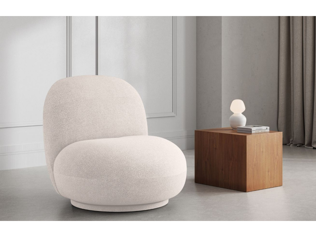 Křeslo Chuck je výjimečný kus nábytku, který je potažen bouclé tkaninou. Tato látka byla vytvořena v duchu udržitelného rozvoje. Materiál je vyroben z polyesteru, který se získává recyklací plastových lahví. Výběrem křesla Chuck nejen podtrhnete estetiku svého interiéru, ale navíc přispějete ke snížení množství odpadu. Hladké, zaoblené linie křesla tvoří vizuální harmonii, jež působí uklidňujícím dojmem. Křeslo Chuck disponuje otočnou funkcí, která umožňuje jeho snadné otáčení do libovolného směru. Jedinečné provedení křesla poskytuje nejen bezkonkurenční pohodlí, ale také přináší do vašeho domova prvek uměleckého vyjádření. Ať jej umístíte do elegantního městského loftu nebo minimalisticky zařízeného domu, toto křeslo jistě upoutá pozornost každého, kdo se s ním setká.