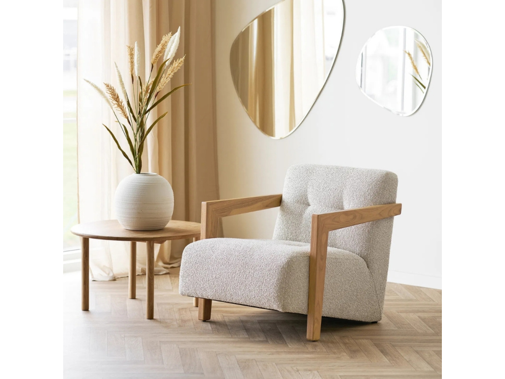 Křeslo Carocas na první pohled zaujme svým nadčasovým designem, který spojuje čisté linie a přírodní materiály. Pevná dřevěná konstrukce vytváří elegantní rám, jenž dodává celku lehkost a vzdušnost. Měkké čalounění s jemnou strukturou příjemně zve k posezení a přináší pocit útulného komfortu. Opěradlo a široké sedadlo podporují pohodlnou polohu těla a vybízejí k dlouhému odpočinku. Díky své univerzální estetice skvěle zapadne do moderních, skandinávských i minimalistických interiérů, kde vynikne jako stylový prvek. V obývacím pokoji vytvoří útulné místo pro relaxaci, zatímco v čtecím koutku se stane oblíbeným útočištěm pro klidné chvíle. Kombinace jednoduchosti a komfortu z něj dělá nadčasový kousek, který zútulní každý domov.