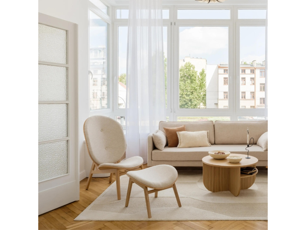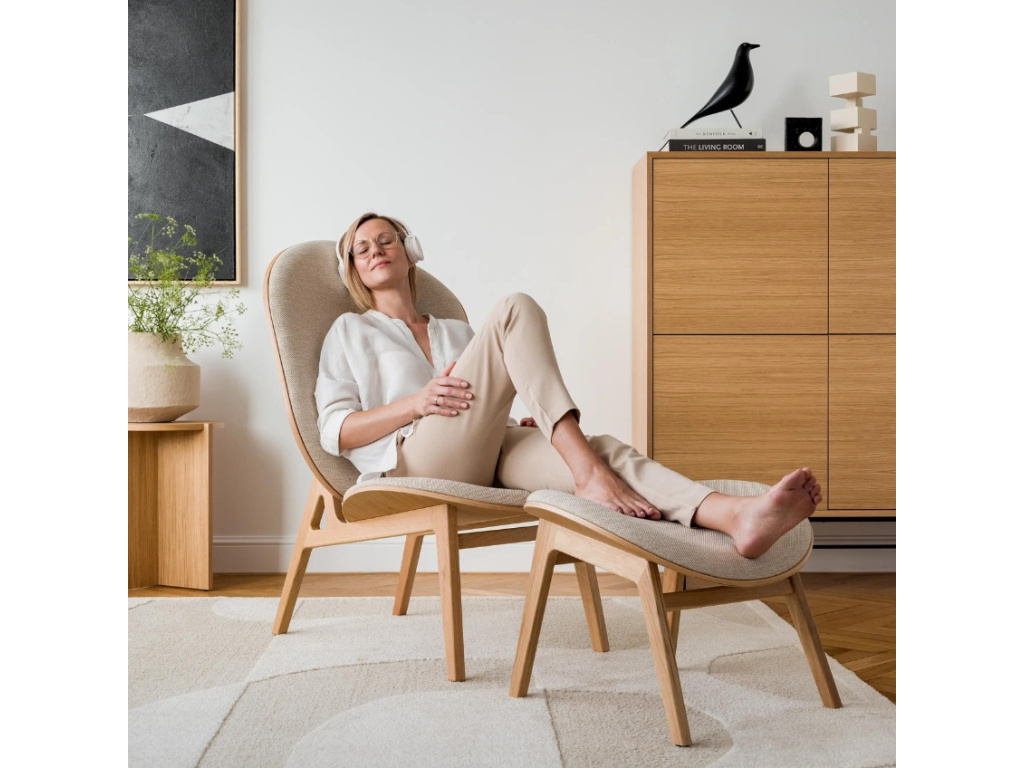 Svou skandinávskou elegancí ozdobí křeslo Harmonia každý moderní interiér. Jeho dubová konstrukce je doplněna béžovým čalouněním z pletené látky ze směsi bavlny a lnu a společně s perfektně zvoleným úhlem sedáku a opěradla se postará o opravdu pohodlné posezení. Křeslo skvěle zapadne do obývacího pokoje, ložnice i předsíně, zdobit ale může také kavárny nebo čajovny. Navíc ho je možné doplnit také podnožkou Harmonia, která zmiňovaný komfort ještě umocní.