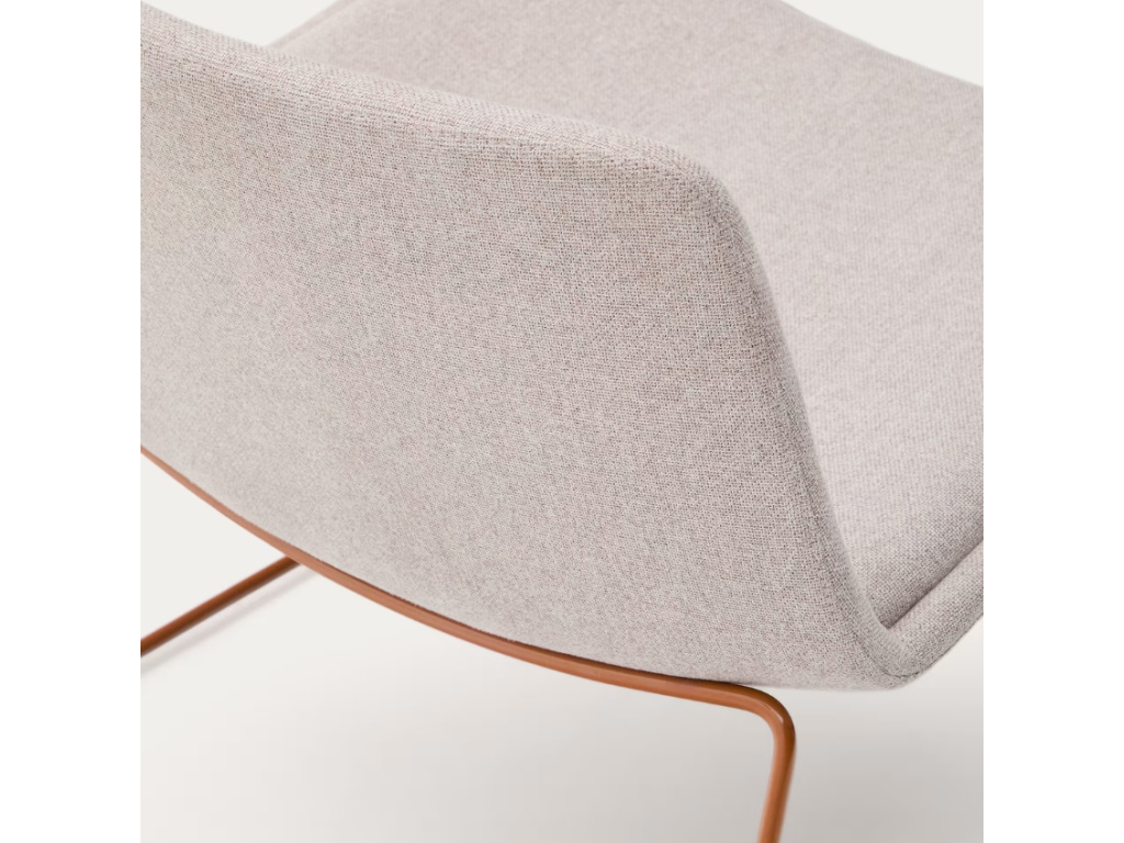 Béžové křeslo Zahara má čisté a jednoduché linie, které se skvěle hodí do skandinávských a minimalistických interiérů. Jeho elegantní design a komfortní vlastnosti si zamilujete. Jemné čalounění v béžové barvě zaručí pohodlné posezení – třeba při čtení knížky nebo sledování filmu. Vzdušná kovová konstrukce v kontrastní terakotově červené barvě podtrhne moderní vzhled celého produktu, který navíc můžete doplnit jídelními či barovými židlemi ze stejnojmenné série.