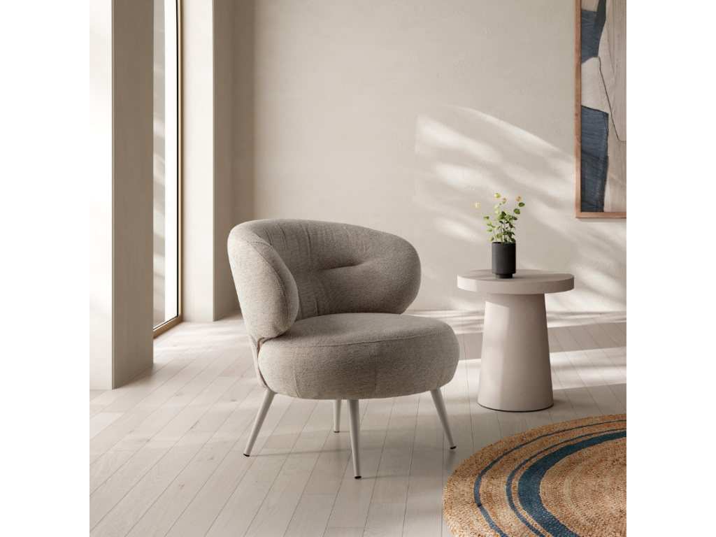 Křeslo Liva od značky Marckeric je jako stvořené pro chvíle klidu a stylového pohodlí. Jeho zaoblené linie a měkké čalounění vás obejmou při každém posezení. Jemný odstín béžové harmonicky zapadne do světlých interiérů i kontrastních kombinací. Ať už v obýváku nebo ložnici, Liva se okamžitě stane vaším oblíbeným designovým společníkem.