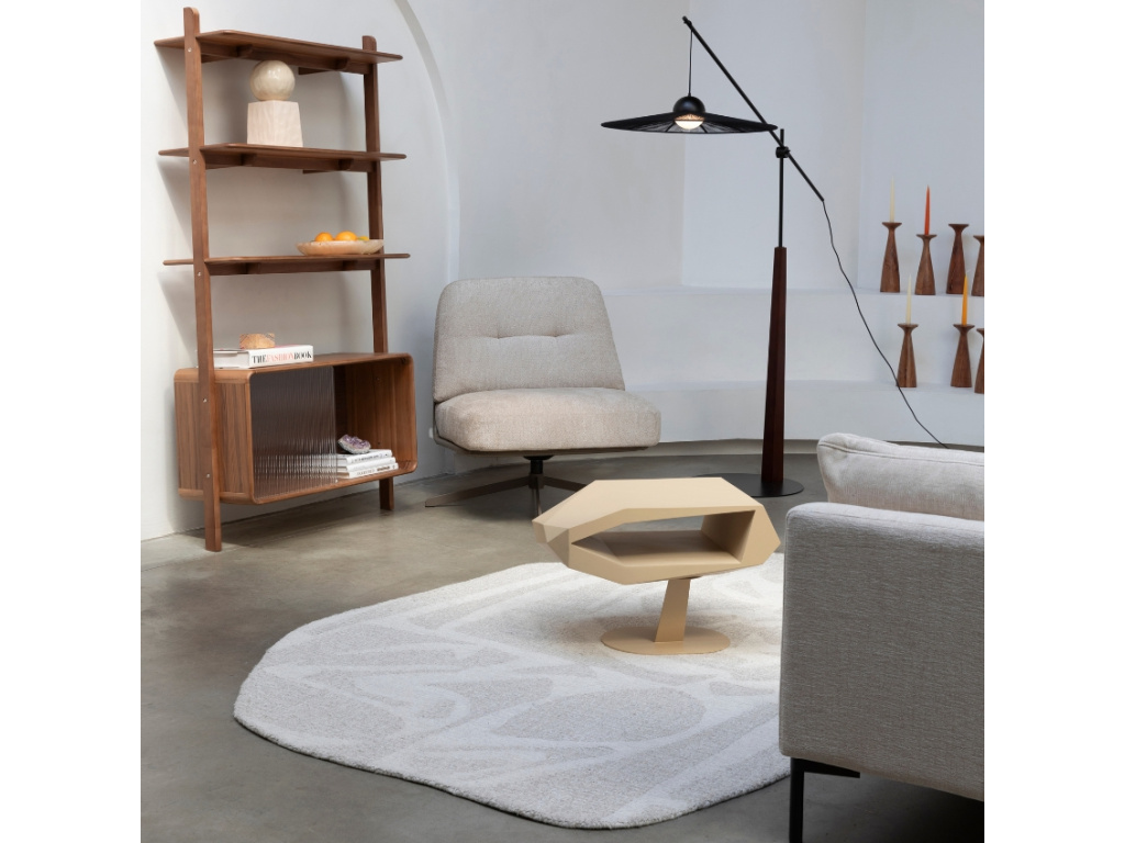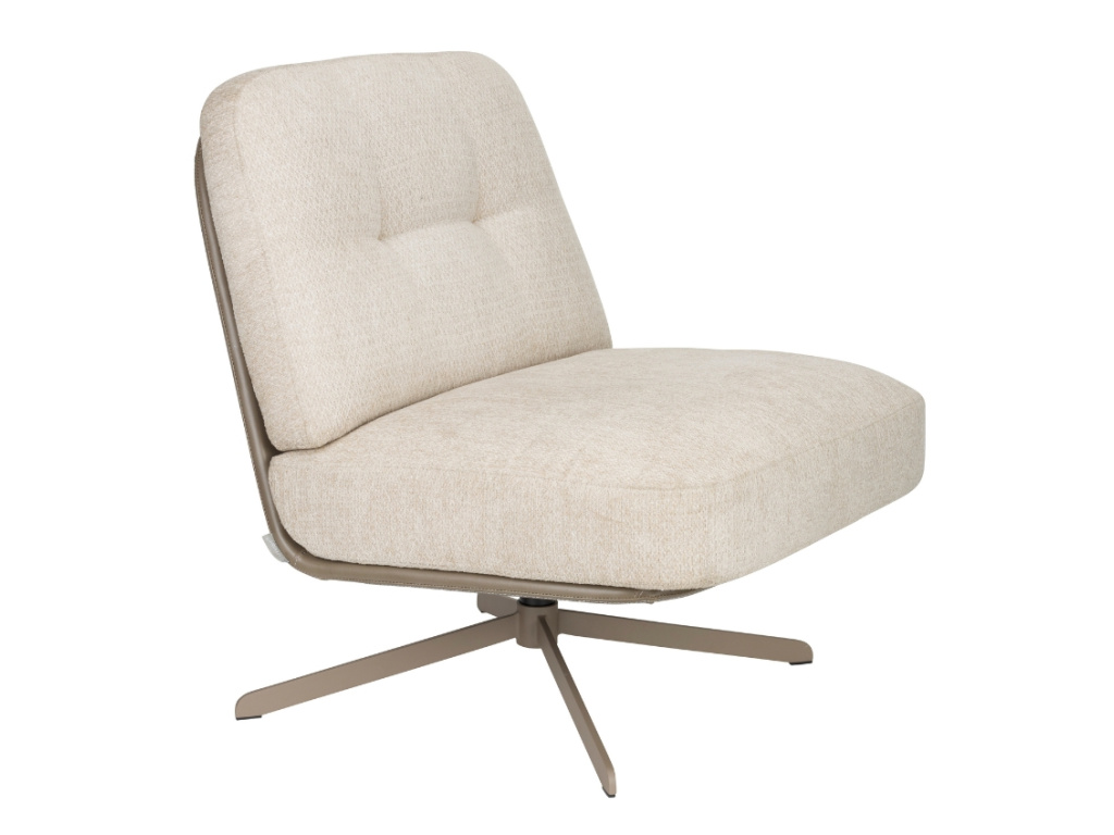 Křeslo BENJAMIN se stane místem, kam se budete rádi vracet po dni plném povinností. Jeho široký, nízko posazený tvar a měkké, odnímatelné polštáře potažené jemnou látkou vyzívají k relaxaci. Otočná podnož z práškově lakovaného kovu dodává křeslu dynamiku a praktičnost. Kombinace béžové látky a imitace kůže tvoří harmonii, která skvěle zapadne dočtecího koutku, obývacího pokoje i ložnice.