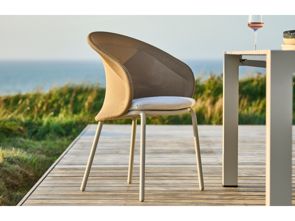 Jedinečné zahradní křeslo Mindo 114 je velmi pohodlné křeslo, a to díky speciálně navrženému opěradlu. Vypletené opěradlo je vyrobeno z kvalitní italské polypropylenové příze, která je určená pro venkovní použití. Jemná perforace opěradla umožňuje proudění vzduchu a zajistí vám pohodlí i v horkém klimatu. Rám je založen na kombinaci nerezové oceli a hliníku za účelem vyvážení odolnosti a flexibility. Sedák je čalouněný kvalitní akrylovou látkou Sunbrella, která je odolná jak vůči vodě a nečistotám, tak vůči povětrnostním podmínkám a UV záření.