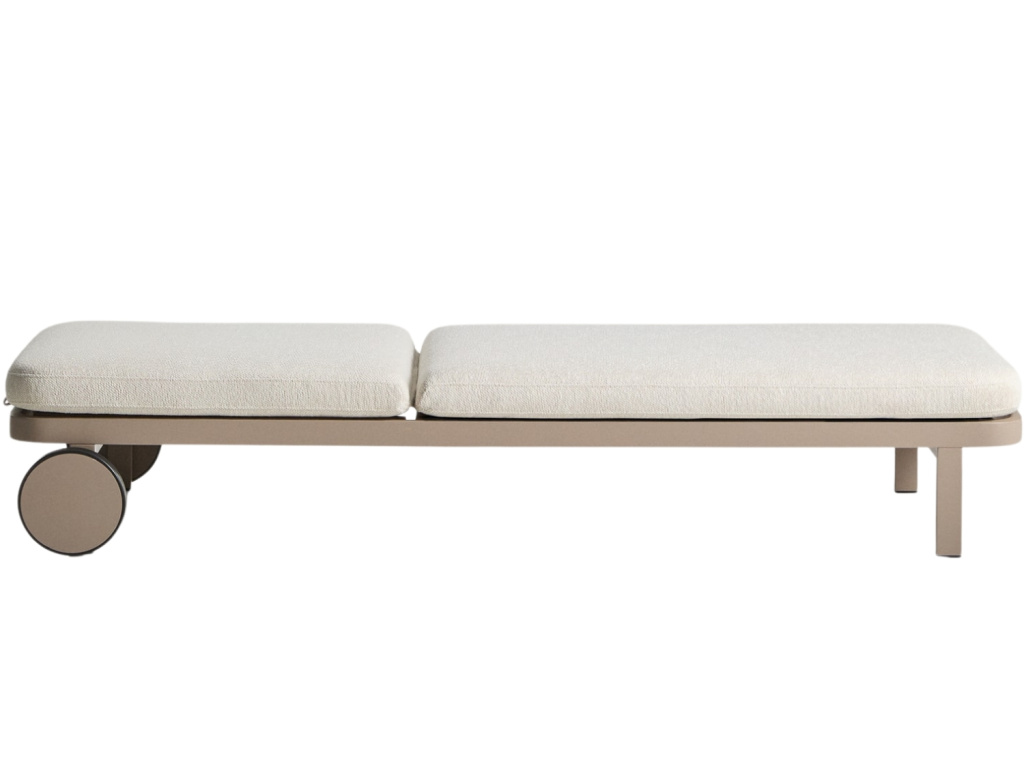 Proměňte svou terasu v soukromou oázu klidu s lehátkem, které v sobě spojuje strohou eleganci práškově lakovaného béžového hliníku a nekompromisní funkčnost. Díky minimalistickému designu a odolným materiálům se stane dominantou moderních exteriérů i prostorů u bazénu. Nastavitelné opěradlo a subtilní konstrukce s kolečky vám dovolí následovat sluneční paprsky s naprostou lehkostí po celou sezónu.