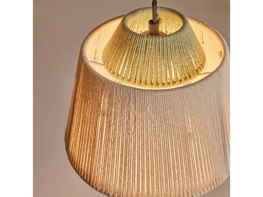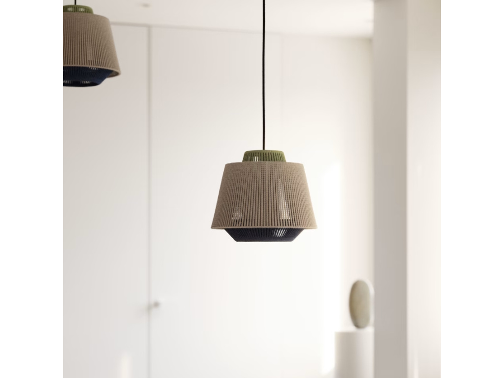 Bavlněné stínidlo světla Kave Home Yuvia je ručně tkané, a proto je každý kousek originál. Zaujme svým elegantním tvarem a kombinací barev - béžová barva je doplněna zeleným a tmavě modrým detailem. Ukažte svým interiérem, že jste kreativní a máte rádi stylové designové kousky! Světlo doporučujeme doplnit také stojací lampou ze stejnojmenné série.