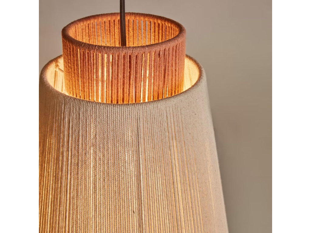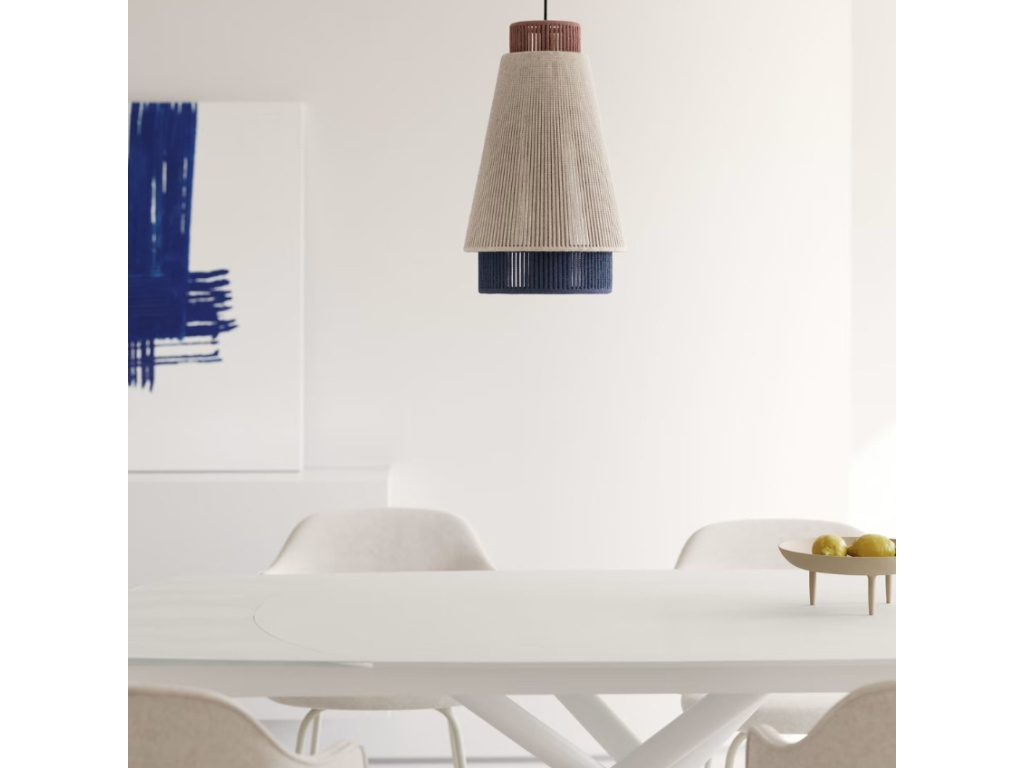 Bavlněné stínidlo světla Kave Home Yuvia je ručně tkané, a proto je každý kousek originál. Zaujme svým elegantním tvarem a kombinací barev - béžová barva je doplněna terakotově červeným a tmavě modrým detailem. Ukažte svým interiérem, že jste kreativní a máte rádi stylové designové kousky! Světlo doporučujeme doplnit také stojací lampou ze stejnojmenné série.