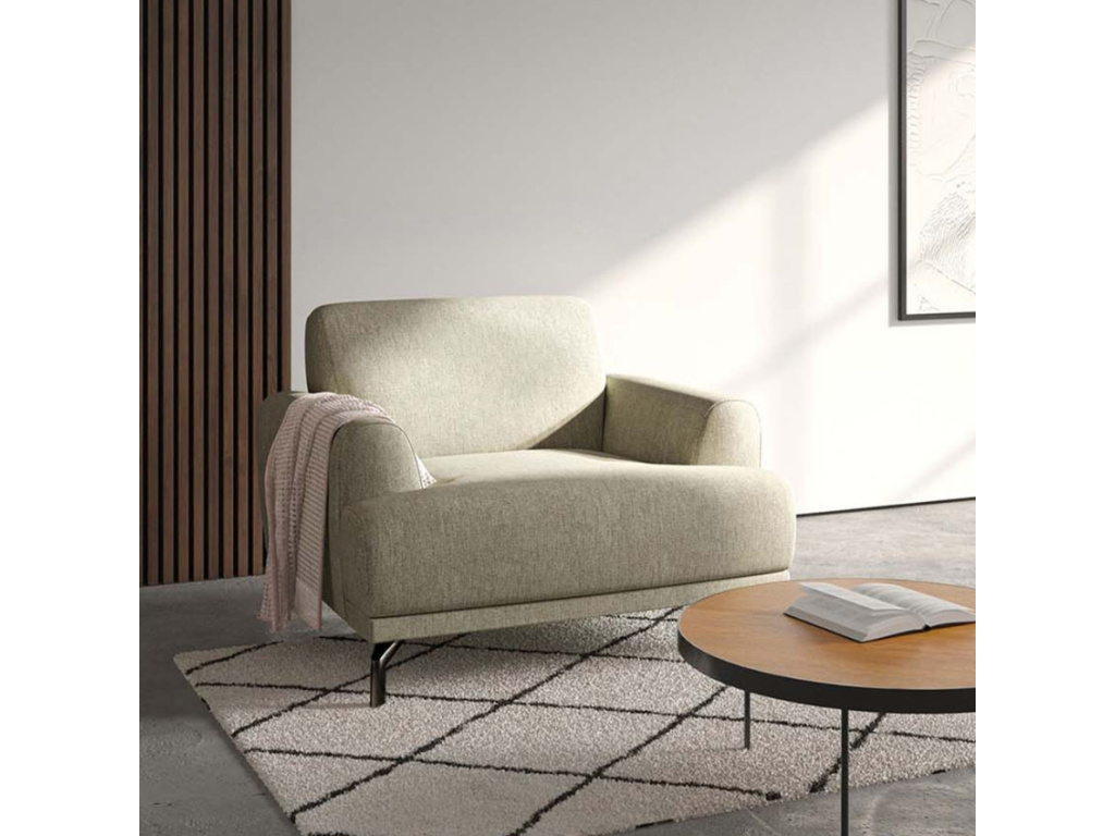 Designové křeslo MESONICA Puzo rozhodně zaujme na první pohled. Robustně vyhlížející křeslo je čalouněné velmi kvalitní a příjemnou látkou v krásném béžovém odstínu a opatřená stabilní kovovou podnoží v černé barvě. Toto křeslo elegantních linií a působivého provedení vnese do vašeho domova jedinečný styl.
