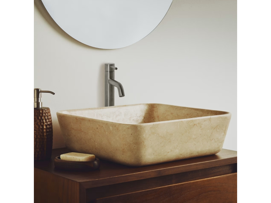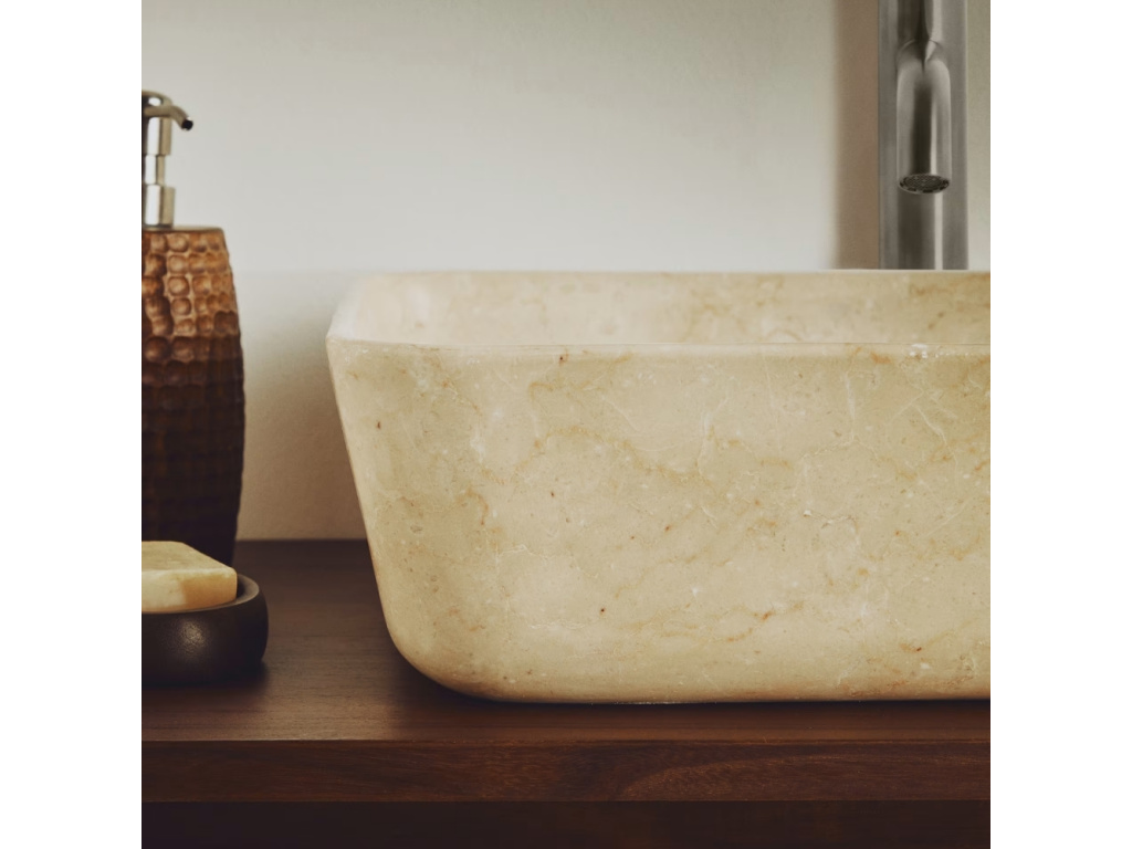 Umyvadlo Darnen je skutečným klenotem v oblasti koupelnového designu. Mramor z jávského ostrova v jemném béžovém odstínu působí sofistikovaně, moderně a elegantně. Přirozené variace barev a kontrastní žilkování navíc podtrhují organickou krásu tohoto materiálu. Jen se podívejte na tu dokonalou přírodní malbu! Jemné linie ve stříbřitých tónech vytvářejí na povrchu abstraktní kresbu, která dodává tomuto designovému kousku hloubku a charakter. Mramorové umyvadlo je výbornou volbou, pokud si potrpíte na kvalitu a autentické materiály, máte rádi minimalistické kousky, nebo chcete své koupelně jednoduše dodat špetku osobitosti. Přidanou hodnotou je navíc i ruční výroba – každý kus je tak naprostý originál.