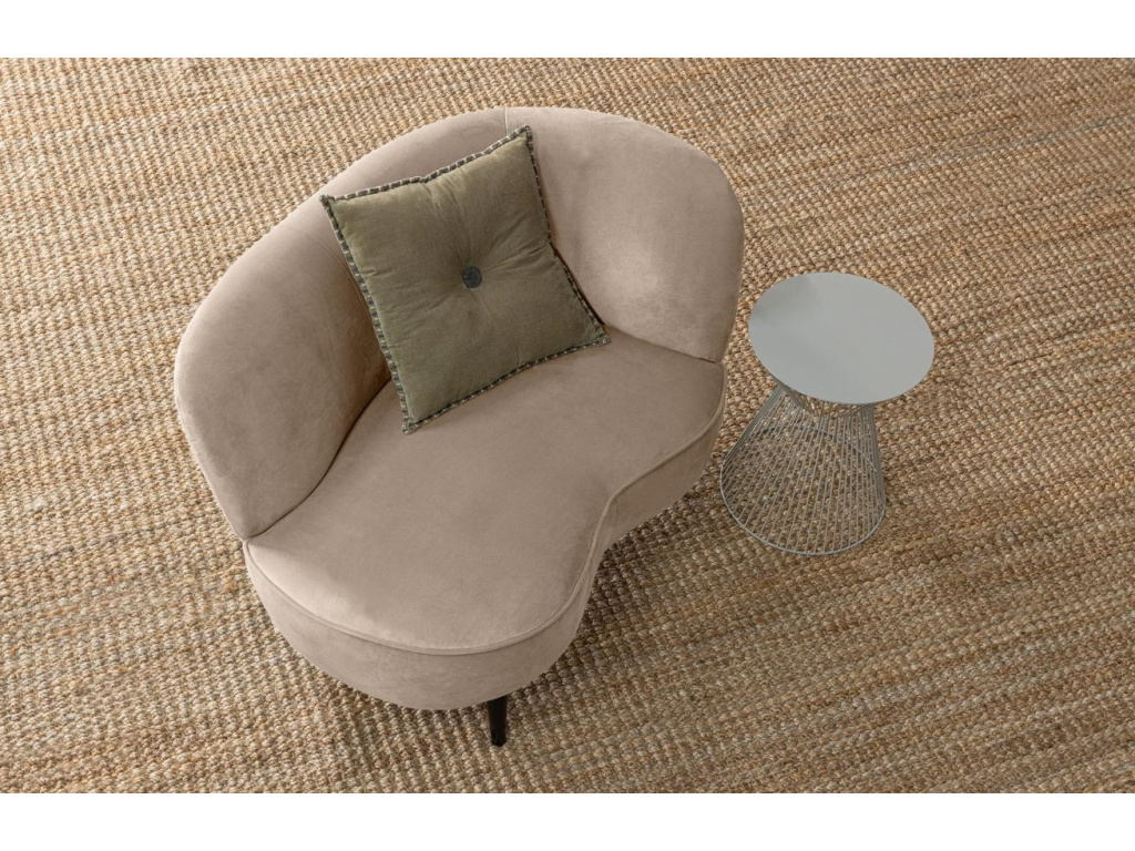 Designové lounge křeslo Norma vás okouzlí svým retro stylem. Křeslo je čalouněné sametovou látkou ve stylovém béžovém odstínu, podnož tvoří čtyři oválné nohy z černě lakovaného dřeva. Křeslo Norma je velmi stylovým a elegantním prvkem, který rozzáří každý obývací pokoj nebo například hotelový salonek či lobby.