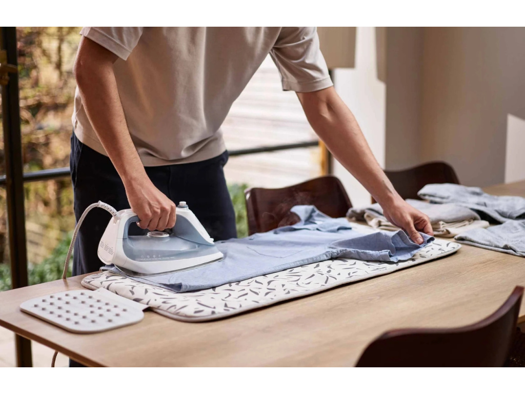Objevte praktického pomocníka pro rychlé a elegantní žehlení – žehlící podložku Swift, kterou nabízíme ve dvou stylových provedeních! Tato kompaktní podložka promění jakýkoli rovný povrch – stůl, desku nebo prádelní stůl – na plnohodnotnou žehlící plochu během okamžiku. Díky vícevrstvé DripLock technologie je odolná vůči vysokým teplotám až do 200 °C a vlhkosti páry, což zajišťuje bezpečné a efektivní použití i při náročnějším žehlení. Sklápěcí protiskluzovou silikonovou plochu využijete pro odložení žehličky mezi jednotlivými úkony, přičemž nehrozí poškrábání povrchu nebo sklouznutí a praktické závěsné poutko vám umožní napařování prádla ve svislé poloze – stačí pověsit na dveře nebo nástěnný držák a začít žehlit.