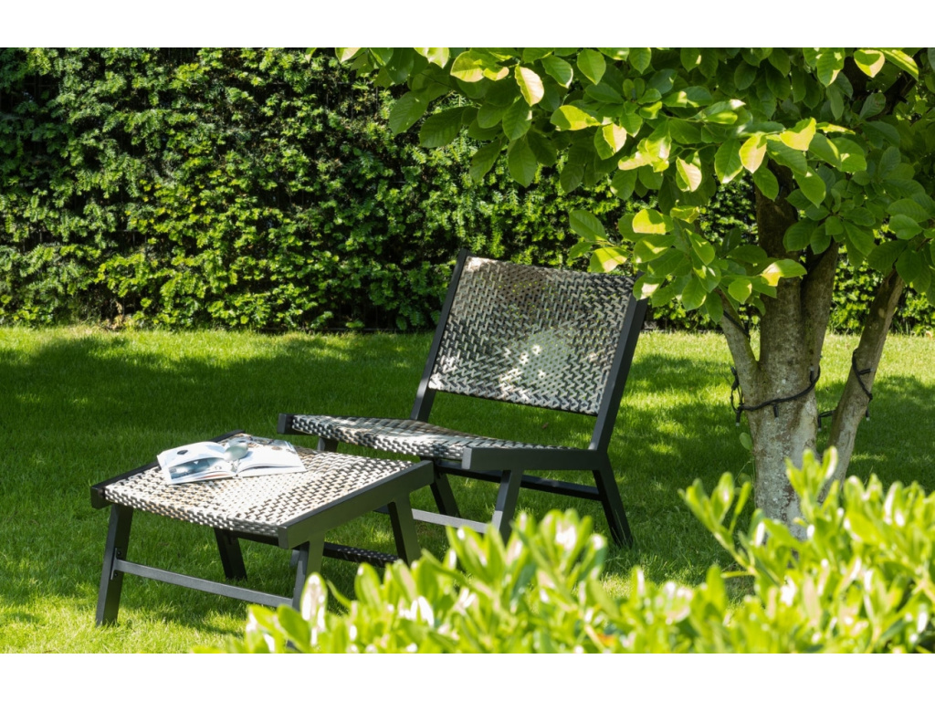 Zahradní podnožka Halea nabízí decentní design v moderním provedení. Působí příjemným dojmem a má komfortní vlastnosti, které při relaxaci ve svém oblíbeném křesle oceníte. Plastový materiál výpletu podnožky si oblíbíte pro jeho nenáročnou údržbu a odolnost. Její pevný rám je z hliníku. Podnožka Halea je vhodná pro vnitřní i pro venkovní prostředí – zahrady, altány nebo balkony.