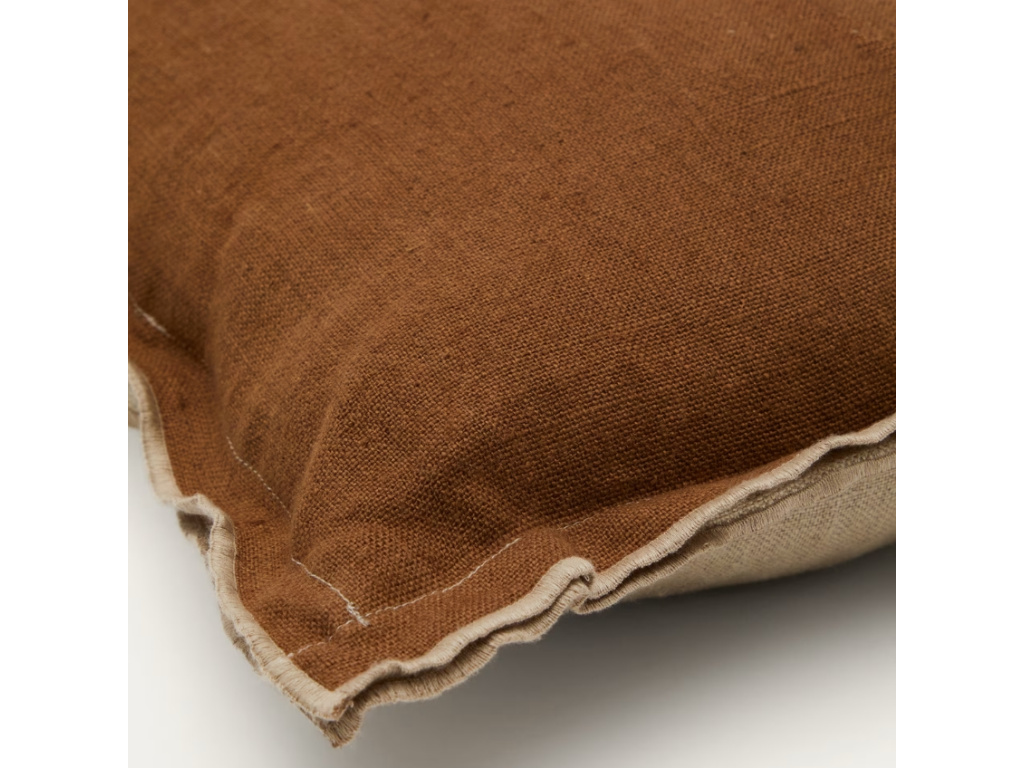 Povlečte svůj oblíbený polštář do lehkého povlaku Kave Home Sagi a dodejte mu nový vzhled. Povlak je vyrobený ze 100% lnu, který je oblíbeným materiálem například díky prodyšnosti, odolnosti nebo díky tomu, že nepohlcuje prach. Polštář je z jedné strany v zemité hnědé a z druhé strany v neutrální béžové barvě, takže ho můžete otáčet dle vaší nálady. Dejte vaší pohovce osobitý nádech s tímto jedinečným kouskem!
