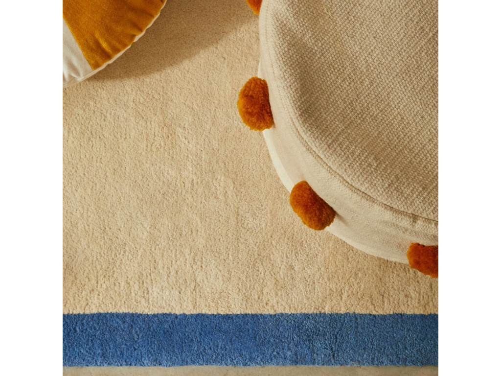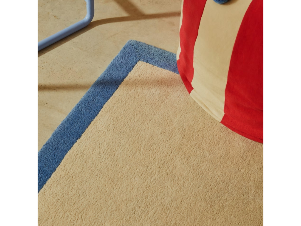 Koberec Kave Home Nalim vdechne dětskému pokoji veselý charakter a navíc vytvoří bezpečnou plochu pro hraní. Béžový střed rámuje krásný pomněnkově modrý okraj, který podtrhuje jeho celkový design. Krátký vlas z 100% bavlny je měkký na dotek a nabízí ideální povrch pro malé dětské nožky. Koberec je k dispozici také v béžovo-žlutém provedení.