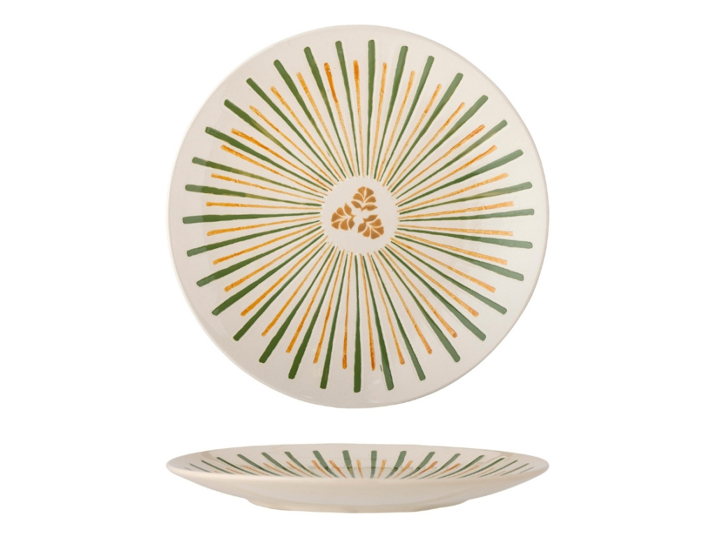 Talíř Heikki od Bloomingville si vás získá svým ručně malovaným vzorem v krásných zelených odstínech. Je ideální pro servírování vašich oblíbených jídel a dodá vašemu stolu dekorativní akcent. Vzhledem k povaze ruční práce se mohou vyskytnout drobné odchylky v barvě a voru, díky kterým bude každý talíř jedinečný. Obohaťte váš jídelní stůl o nový designový kousek nádobí.