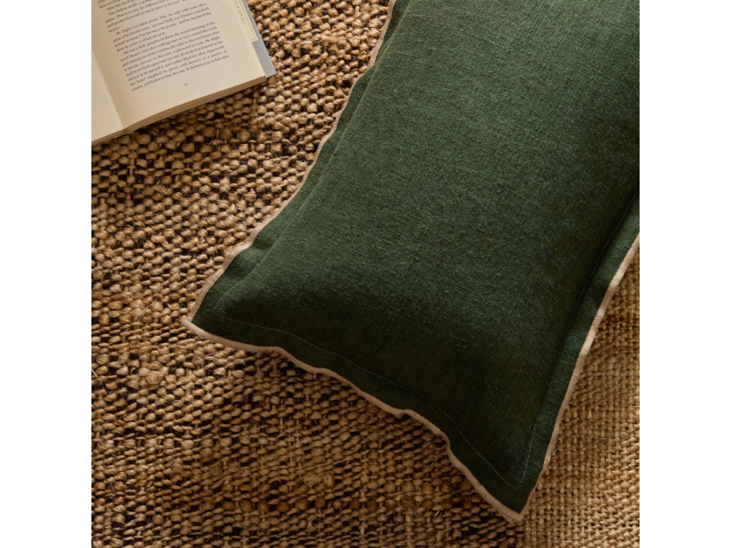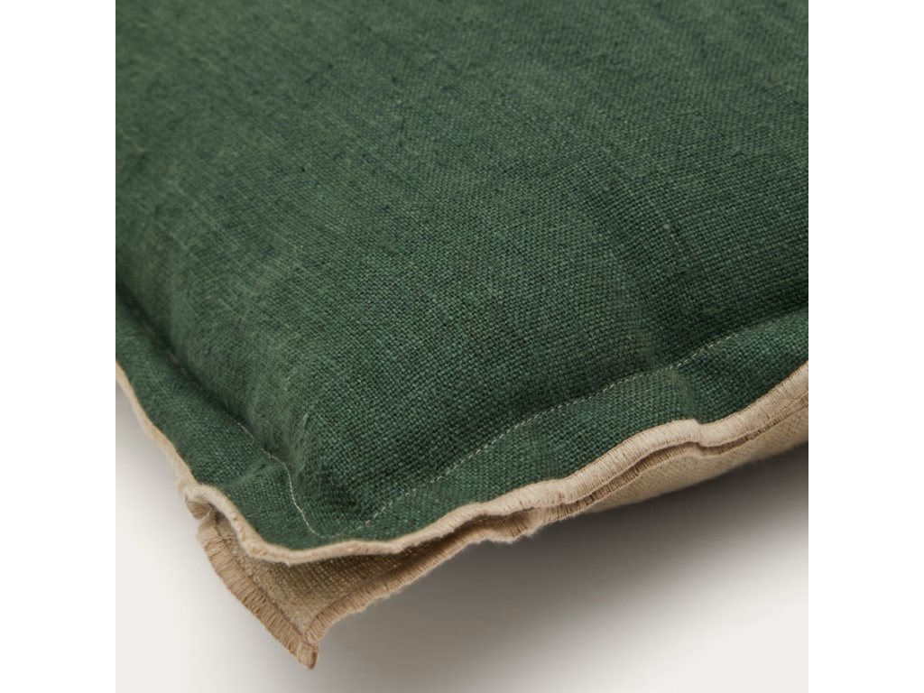 Povlečte svůj oblíbený polštář do lehkého povlaku Kave Home Sagi a dodejte mu nový vzhled. Povlak je vyrobený ze 100% lnu, který je oblíbeným materiálem například díky prodyšnosti, odolnosti nebo díky tomu, že nepohlcuje prach. Polštář je z jedné strany v temně zelené a z druhé strany v neutrální béžové barvě, takže ho můžete otáčet dle vaší nálady. Dejte vaší pohovce osobitý nádech s tímto jedinečným kouskem!
