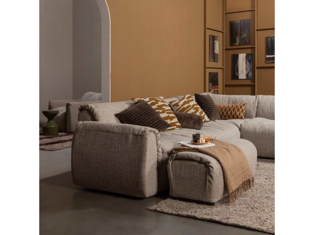 Dodejte svému obývacímu prostoru útulný designový akcent s podnožkou z kolekce Bagel od holandské značky WOOOD. Příjemně měkká melanžová tkanina Orari dopřeje vašim nohám zasloužené pohodlí, zatímco péřová vrstva zajistí, že si odpočinete opravdu naplno. Podnožku snadno připojíte k pohovce ze stejné řady a vytvoříte si tak osobité, dokonale sladěné posezení. Skvěle poslouží nejen pro natažení nohou, ale také jako dodatečné sezení.