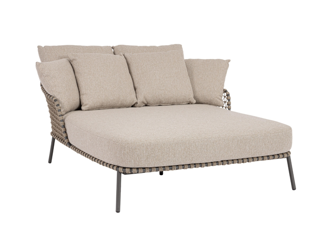 Luxusní dvojlehátko Ivissa přináší dokonalou rovnováhu mezi elegancí a pohodlím. Jeho pevná kovová konstrukce s ručně vyplétanými detaily působí lehce a vzdušně, zatímco měkké polstrování nabízí maximální pohodlí. Ivissa je ideálním kouskem pro lenošení na terase, v zimní zahradě i v interiéru, kde se stane nepřehlédnutelným designovým prvkem. Dopřejte si harmonické spojení moderní elegance a pohodlí ve svém domově!