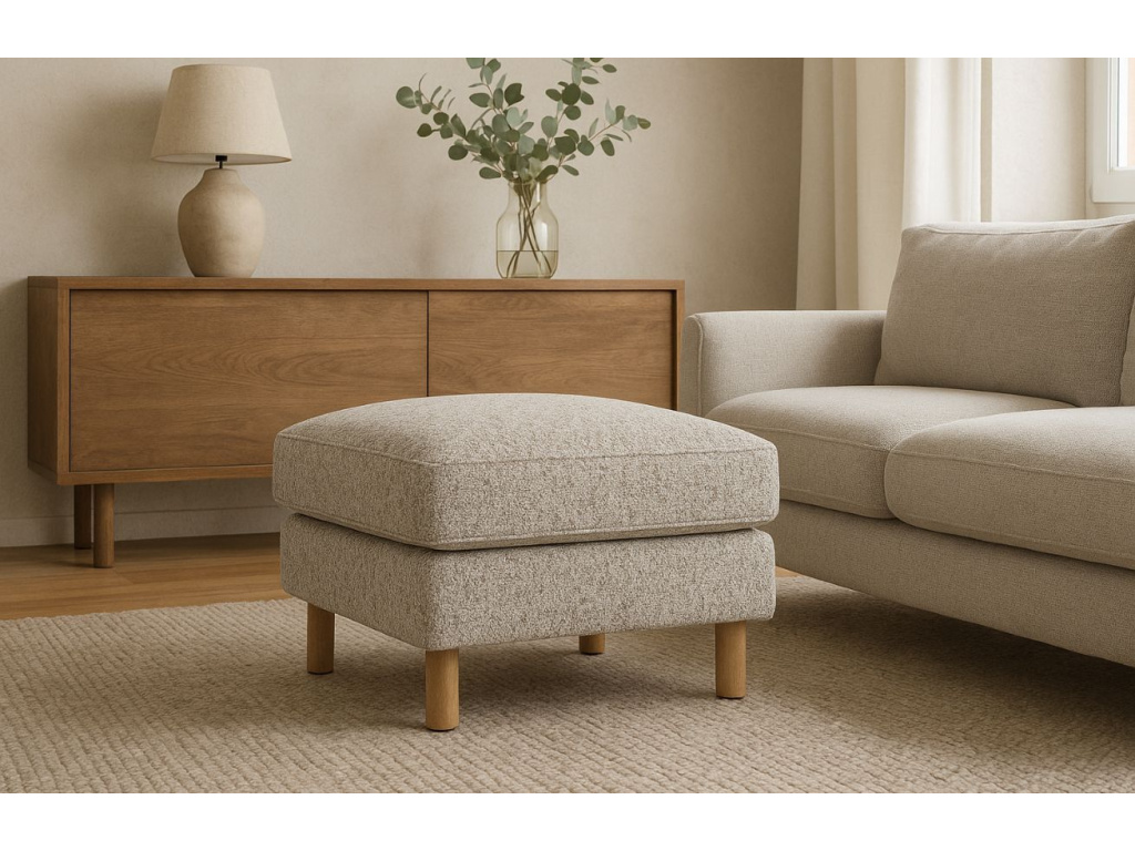 Podnožka Eden spojuje skandinávský design s výjimečným pohodlím a kompaktními rozměry. Díky čistým liniím, elegantnímu tvaru a zaoblené dřevěné podnoži působí lehce a vzdušně, takže se snadno začlení i do menších interiérů. Přestože zabere jen málo místa, poskytuje útulný prostor pro pohodlné natažení nohou nebo jako doplněk k posezení. Sedací část je vyplněna přírodním peřím, které zajišťuje měkkost a příjemnou oporu při každodenním odpočinku. Látka Puente je skutečnou ozdobou tohoto kusu nábytku. Vzniká kombinací čtyř druhů přízí, které se liší tloušťkou, barvou i charakterem. Společně tvoří bohatou strukturu, která láká k doteku i pohledu. Povrch je jemně členitý s drobnými výstupky, matný na pohled a příjemně hřejivý na dotek. Látka má více než stoletou tradici, ale díky moderním barevným kombinacím působí svěže a snadno zapadne do různých interiérů, od klasických po současné. Podnožka je pečlivě vyrobená na zakázku v Evropě, což zaručuje špičkovou kvalitu a dlouhou životnost.