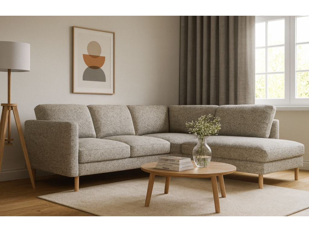 Rohová čtyřmístná pohovka Eden spojuje skandinávský design s výjimečným pohodlím a kompaktními rozměry. Díky čistým liniím, elegantním područkám a zaoblené dřevěné podnoži působí lehce a vzdušně, což z ní dělá ideální volbu do menších interiérů. Přestože nezabere mnoho místa, nabízí útulné a komfortní sezení, které vybízí k odpočinku. Sedací část je vyplněna přírodním peřím, které poskytuje měkkost a příjemnou oporu při každodenním lenošení. Látka Puente je skutečnou ozdobou této pohovky. Vzniká kombinací čtyř druhů přízí lišících se tloušťkou, barvou a charakterem, které společně vytvářejí bohatou a výraznou strukturu. Povrch je jemně členitý s drobnými výstupky, matný na pohled a příjemně hřejivý na dotek. Látka má více než stoletou tradici, ale díky moderním barevným kombinacím se snadno začlení do interiérů od klasických po současné. Pohovka Eden je pečlivě vyrobena na zakázku v Evropě, což zaručuje špičkovou kvalitu zpracování, vysokou odolnost a dlouhou životnost.