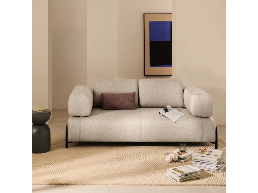 Stylová pohovka Kave Home Compo v dvoumístném provedení zaujme svým moderním vzhledem. Příjemné látkové čalounění doplněno o designovou kovovou podnož vytváří atraktivní kontrast, který do vašeho domova vnese příjemnou atmosféru a osobitý design. Praktickým bonusem jsou prostorné područky – ty můžete kdykoliv snadným vysunutím odstranit a případně je nahradit – větším nebo menším odkládacím stolkem. Pohovku tak dokonale přizpůsobit svým momentálním potřebám.