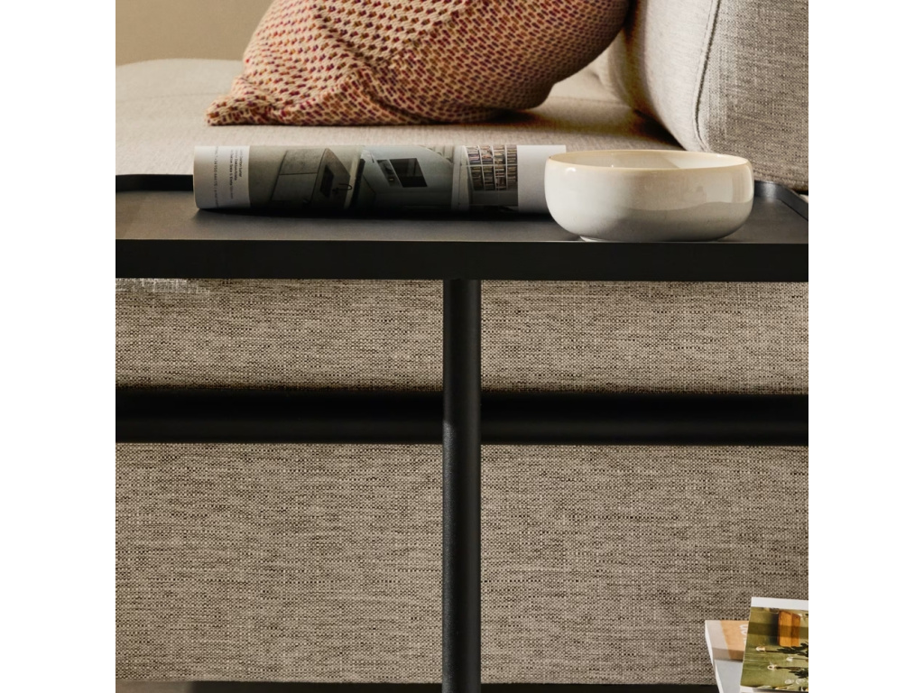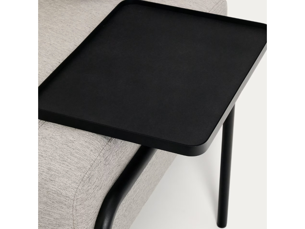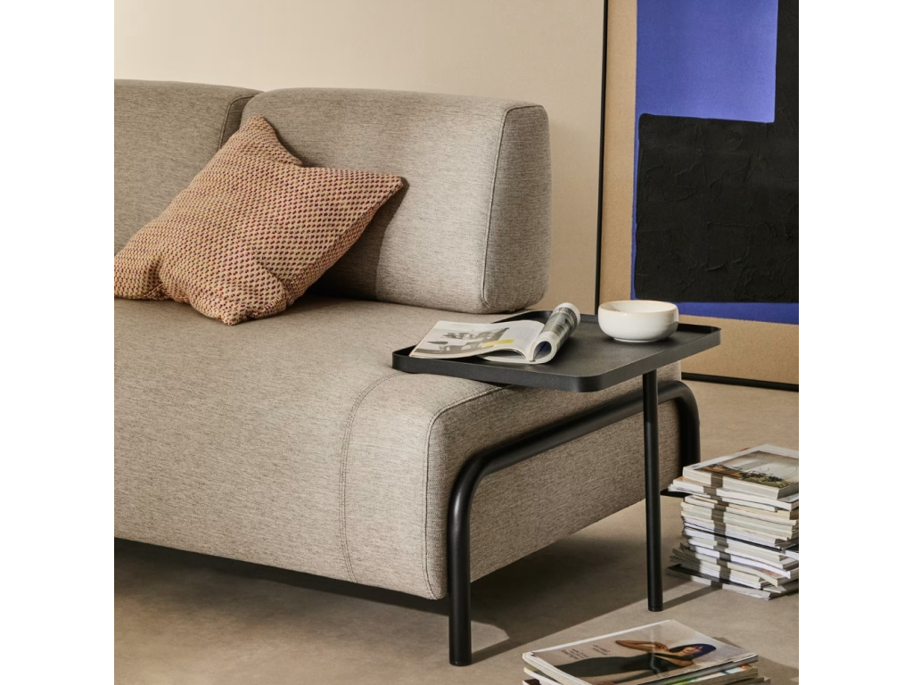 Stylová pohovka Kave Home Compo v dvoumístném provedení zaujme svým moderním vzhledem. Příjemné látkové čalounění doplněno o designovou kovovou podnož vytváří atraktivní kontrast, který do vašeho domova vnese příjemnou atmosféru a osobitý design. Praktickým bonusem je prostorný odkládací stolek a područka – tyto doplňky můžete kdykoliv snadným vysunutím odstranit a případně je nahradit – třeba druhou područkou nebo menším odkládacím stolkem. Pohovku tak dokonale přizpůsobit svým momentálním potřebám.