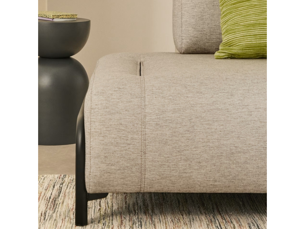 Stylová pohovka Kave Home Compo v dvoumístném provedení zaujme svým moderním vzhledem. Příjemné látkové čalounění doplněno o designovou kovovou podnož vytváří atraktivní kontrast, který do vašeho domova vnese příjemnou atmosféru a osobitý design. Praktickým bonusem je možnost doplnit pohovku o přídavný odkládací stolek nebo područku – tyto přídavné komponenty jednoduše zasunete do připravených otvorů. Kdykoliv je můžete vyměnit za jiný doplněk a pohovku tak dokonale přizpůsobit svým momentálním potřebám.