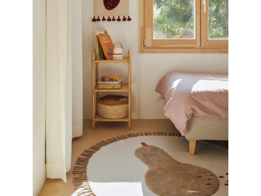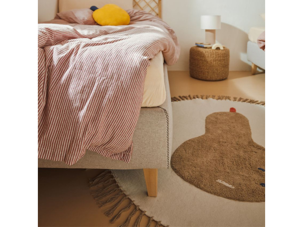 Koberec Tamya značky Kave Home se pyšní motivem velké hnědé hrušky. Je vyrobený ze 100% bavlny a jeho okraje zdobí třásně. Skvěle zútulní každé dětské království a přinese do něj místo, na kterém si děti mohou v klidu pohodlně poležet nebo si pohrát s oblíbenými hračkami. Co takhle objet autíčkem celý obvod hrušky? To bude panečku zábava!
