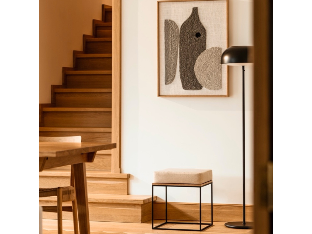 ProhlédnoutBéžový čalouněný taburet Feo 40 x 40 cm