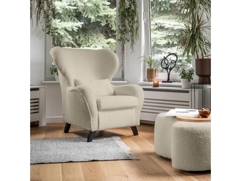 Taburet Miuf od značky Miuform přesně odpovídá nejnovějším trendům bydlení. Nejen, že má jedinečný tvar, ale také je plně pokrytý měkkou a trendy bouclé tkaninou v béžovém odstínu. Něco jiného než samet, ale má minimálně stejně vysoký faktor pohodlí. Celkový design doladí černě lakovaná buková podnož. Taburet Miuf, díky své barvě a jedinečnému tvaru, skvěle zapadne do každého interiéru. Navíc jej doporučujeme kombinovat i s křesly řady Miuf, které dodají to pravé pohodlí při posezení.