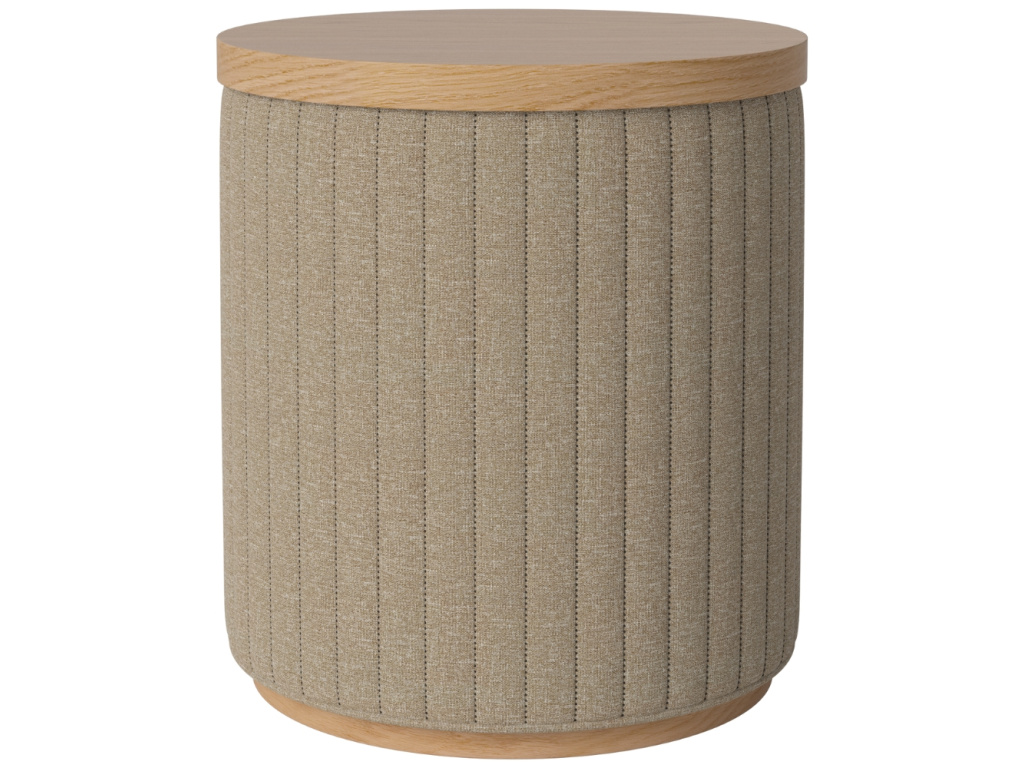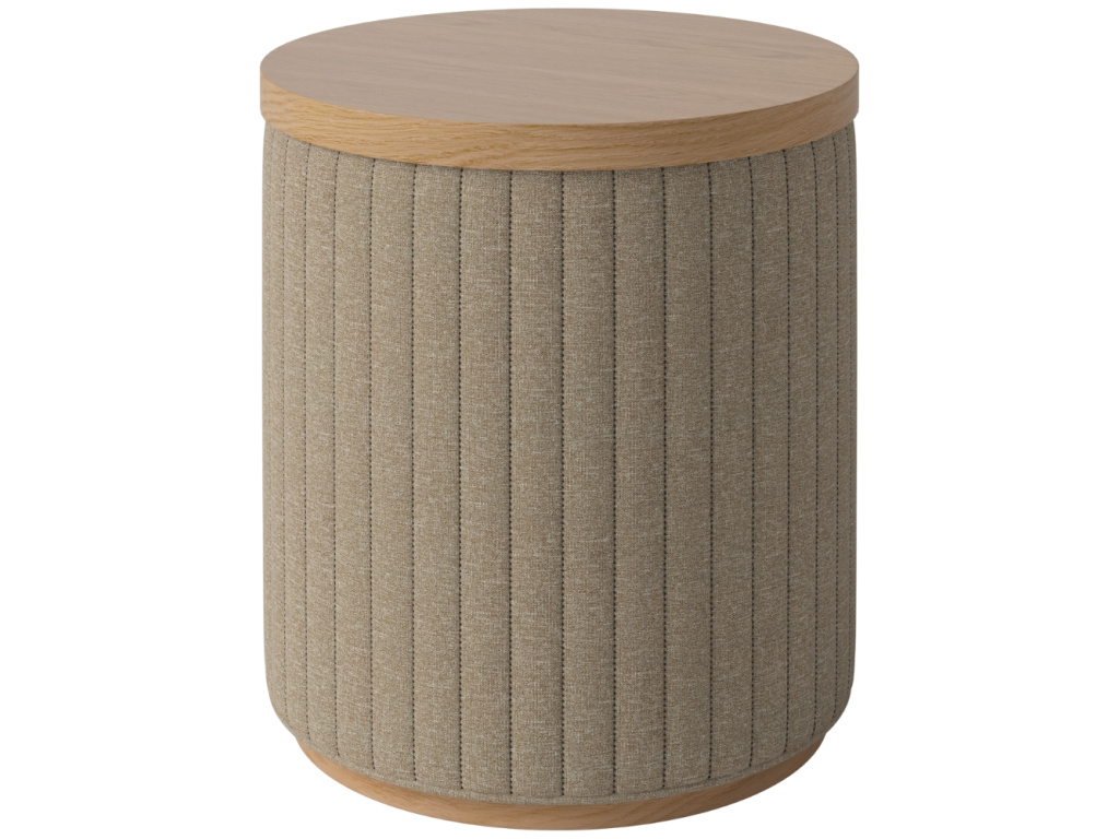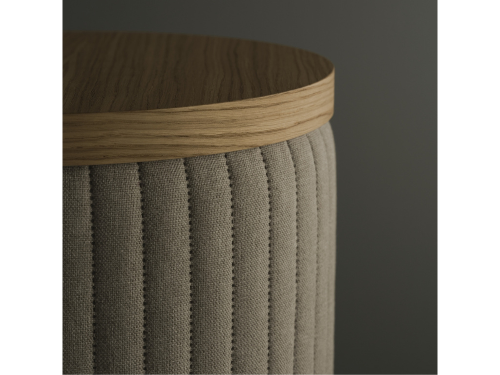Podívám seBéžový čalouněný taburet Rigato 40 cm s dubovým podnosem