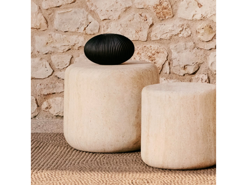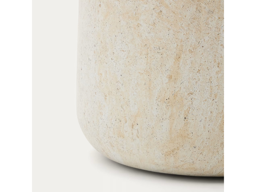 Zahradní stolek Drasi je sofistikovaný designový kousek, který dodá vašemu prostoru nadčasovou eleganci. Je vyroben z GFRC (kompozitního materiálu vyztuženého skelnými vlákny), který zajišťuje vysokou pevnost při zachování nižší hmotnosti. Jeho povrchová úprava s travertinovým efektem přináší přirozenou texturu a jedinečné odstíny, díky čemuž je každý kus originální. Díky své robustní konstrukci je stolek vhodný pro vnitřní i kryté venkovní použití. Minimalistické linie a přirozené barevné tóny umožňují snadné kombinování s dalšími prvky v interiéru i exteriéru. Drasi je dostupný ve čtyřech provedeních, která lze vzájemně kombinovat a vytvořit tak harmonický a funkční celek.
