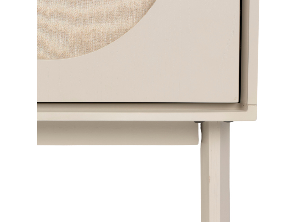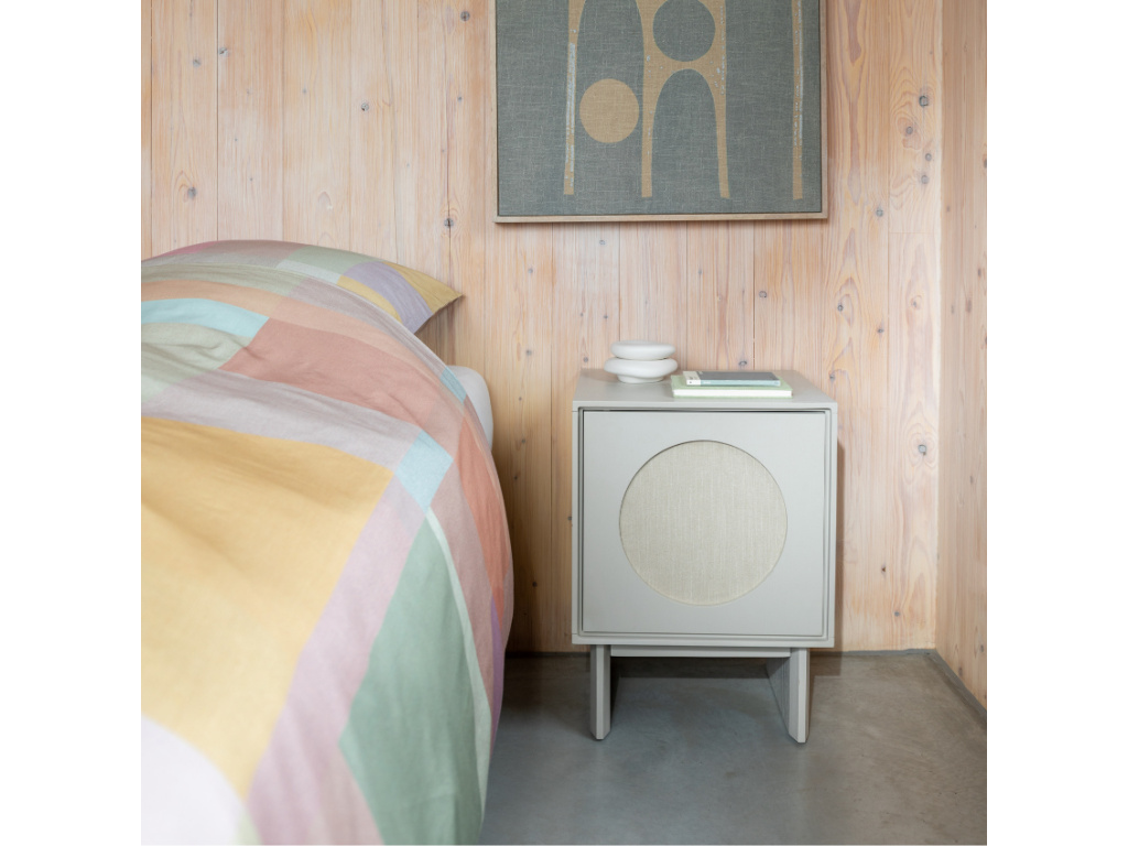 Udělejte si radost designovým nočním stolkem TWIN od značky ZUIVER. Tělo stolku je vyrobeno z lakovaného MDF, deska stolku poté pak z akátového dřeva. TWIN disponuje dvířky, za kterými se skrývají 2 police, do kterých můžete odložit nezbytnosti, které nechcete mít na očích. Dvířka dekoruje detail ve tvaru kruhu, což umocňuje minimalistický dojem stolku. Pozvedněte celkový vzhled své ložnice na vyšší úroveň s tímto designovým nočním stolkem. V nabídce máme také komodu ze stejnojmenné produktové série.