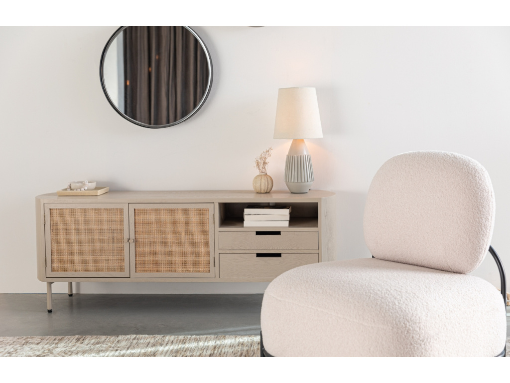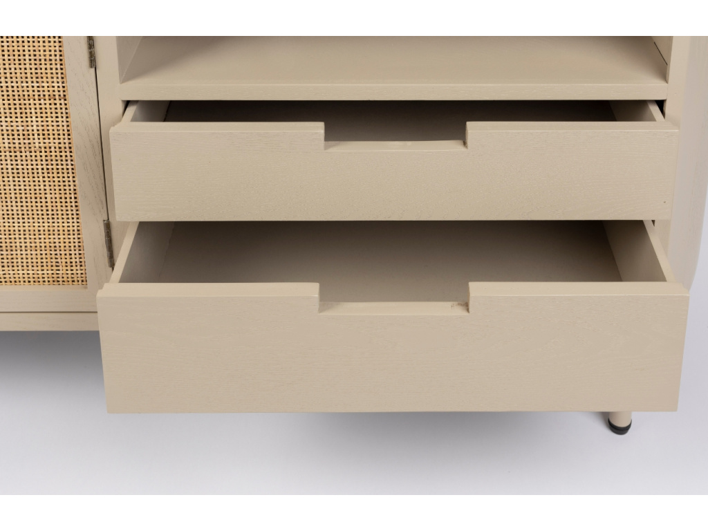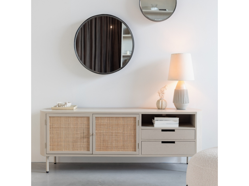 Komoda WLL AMAYA je ozvláštněna přírodním prvkem v podobě ratanové výplně dveří. Díky té působí velice elegantně a prostor skvěle zútulní. Nabízí dostatek úložného prostoru v podobě jedné otevřené a dvou uzavřených polic a dvou zásuvek. Pohodlně se tak do něj vejdou například DVD s oblíbenými filmy nebo alba s fotografiemi. V sérii AMAYA najdete více designově sladěných produktů, které se budou v interiéru skvěle doplňovat.